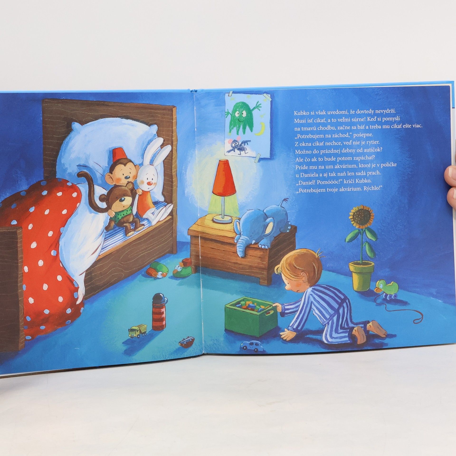 No teda! Zvyčajne zostáva svetlo na chodbe zasvietené. Ale práve dnes, keď musí ísť Kubko súrne na záchod, je zhasnuté! Na chodbe je tma ako v rohu a vypínač je ďaleko. Kubko sa bojí. Našťastie si však vie poradiť! Navyše ocko dostane skvelý nápad...