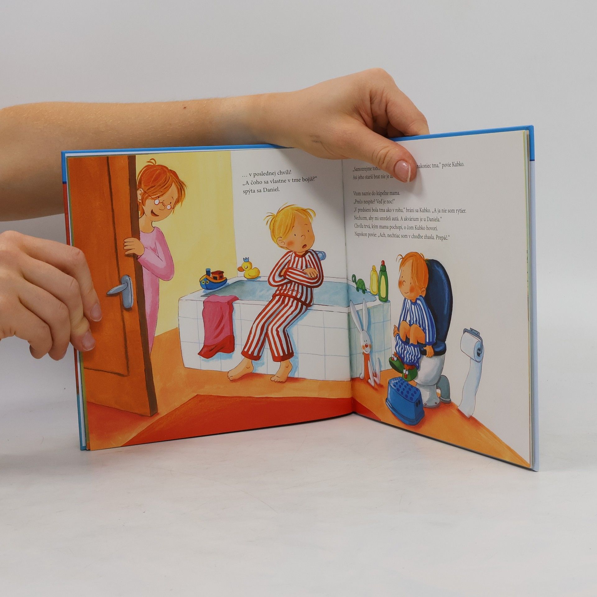 No teda! Zvyčajne zostáva svetlo na chodbe zasvietené. Ale práve dnes, keď musí ísť Kubko súrne na záchod, je zhasnuté! Na chodbe je tma ako v rohu a vypínač je ďaleko. Kubko sa bojí. Našťastie si však vie poradiť! Navyše ocko dostane skvelý nápad...
