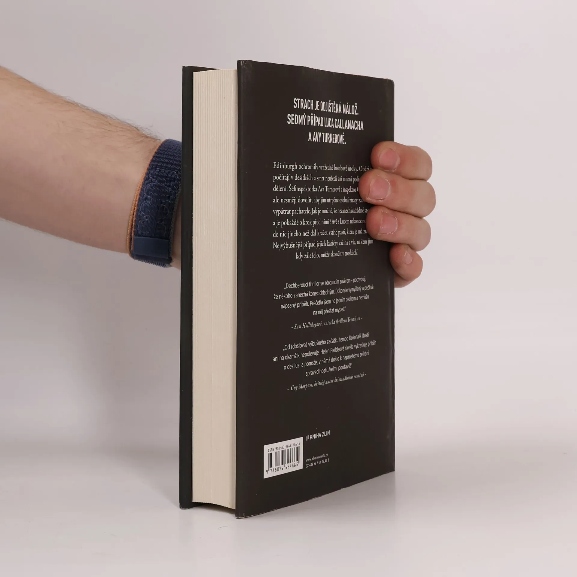 Strach je odjištěná nálož. Sedmý případ Luca Callanacha a Avy Turnerové. Edinburgh ochromily vražedné bombové útoky. Oběti se počítají v desítkách a smrt neušetří ani místní policejní oddělení. Šéfinspektorka Ava Turnerová a inspektor Callanach ale nesmějí dovolit, aby jim utrpěné osobní ztráty zabránily vypátrat pachatele. Jak je možné, že nezanechává žádné stopy a je pokaždé o krok před nimi? Avě s Lucem nakonec nezbude nic jiného než dál kráčet vstříc pasti, která je má zničit. Nejvýbušnější případ jejich kariéry začíná a vše, na čem jim kdy záleželo, může skončit v troskách.