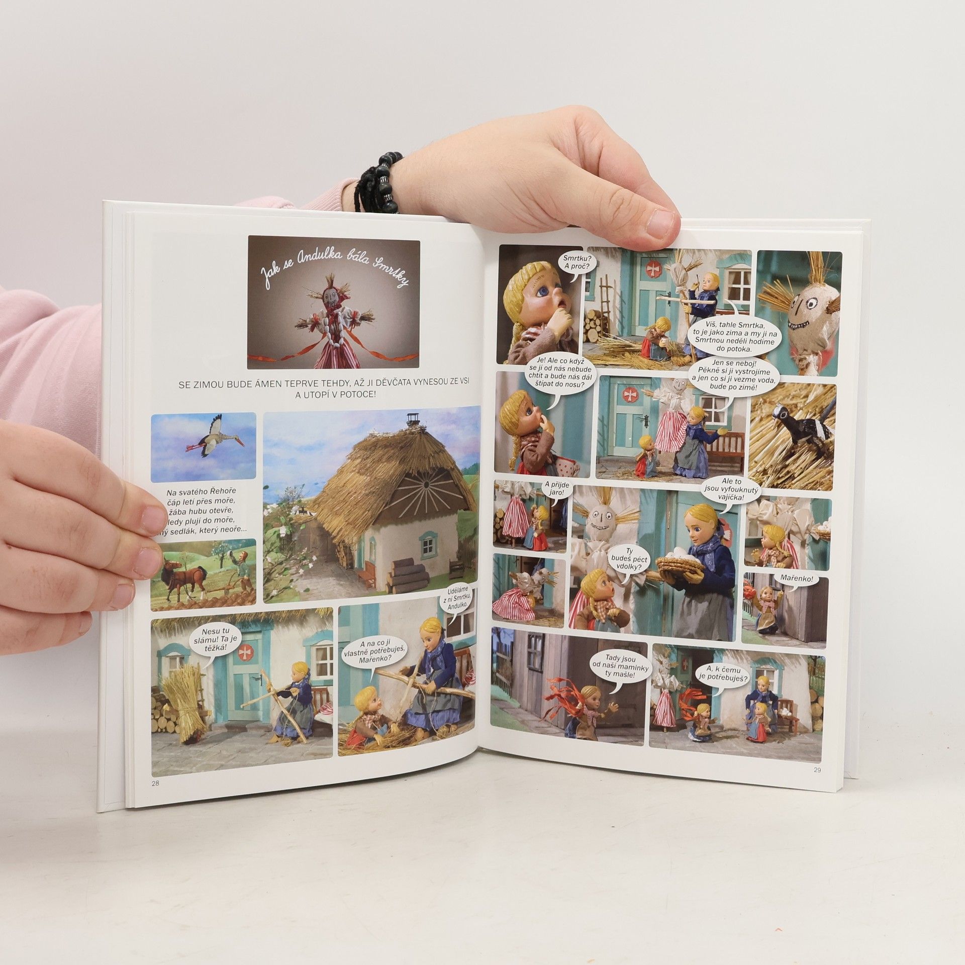 Život na venkově v dobách našich předků harmonicky plynul v souladu s koloběhem roku. Střídání ročních období s sebou přinášelo různé zvyky a tradice. Vyprávění o dětech z malé podhorské vesničky, jak prožívají jaro, léto, podzim a zimu se všemi radostmi i povinnostmi, působí v dnešní době trochu jako z pohádky. Ale jejich příhody jsou tak živé, že se mohly stát tehdy i dnes. Do příběhů našich čtyř kamarádů se promítá prostota, laskavost a moudrost lidových obyčejů a tradic a dokreslují ji pořekadla, přísloví a lidové písničky. Vraťme se tedy do dob minulých. Třeba na nás dýchnou svou mírností a hlubokým spojením s přírodou a připomenou nám duchovní a etický odkaz předchozích generací, v současnosti tak opomíjený.