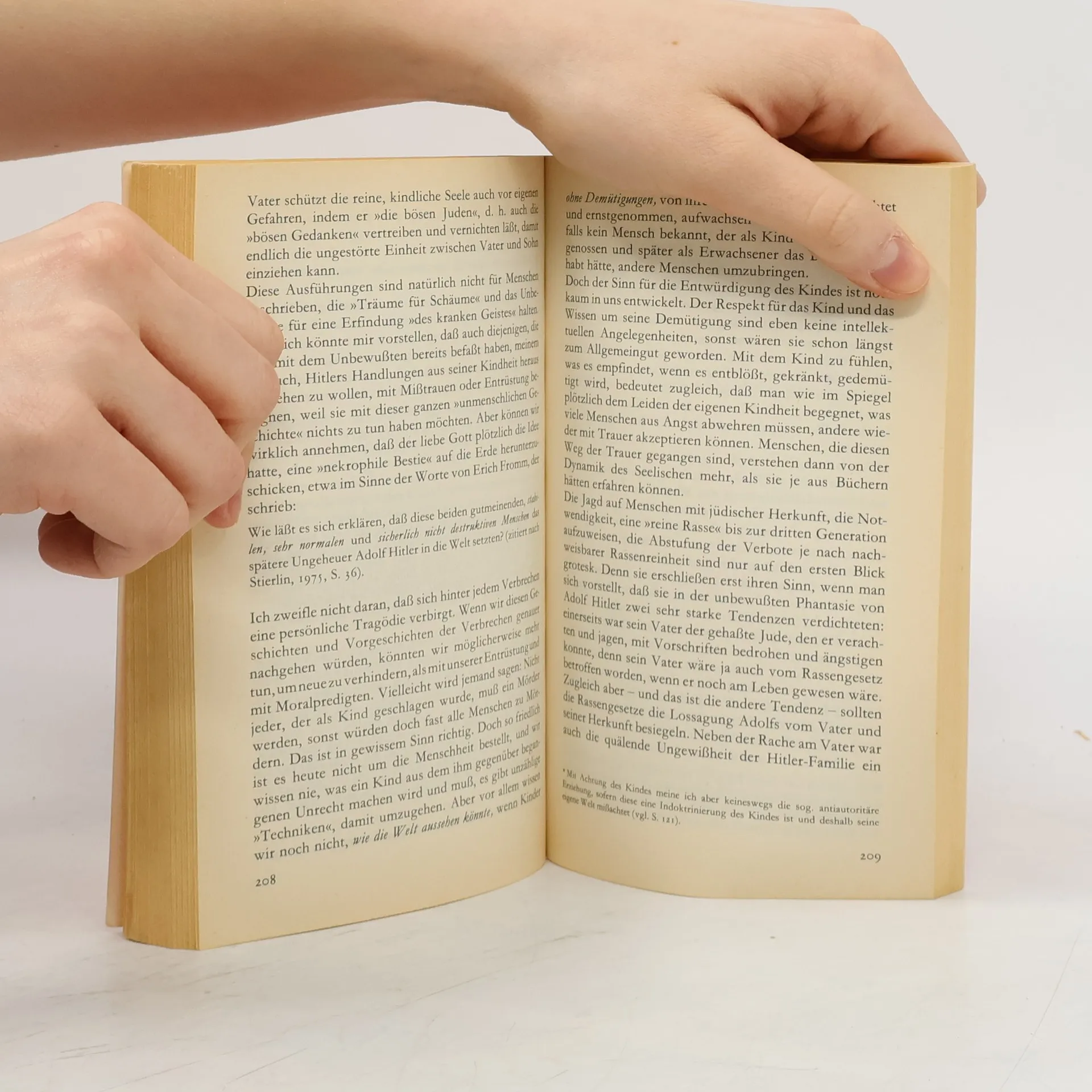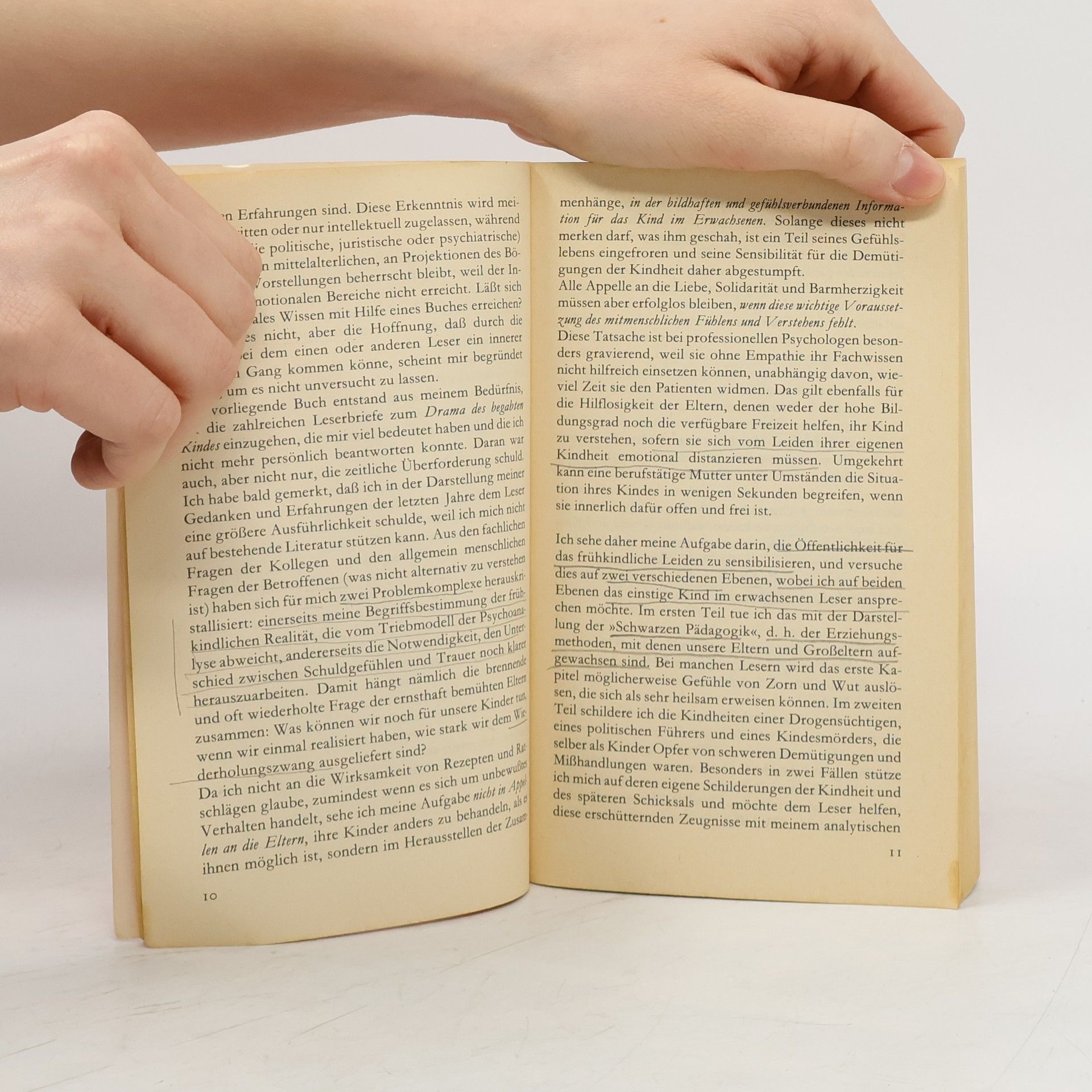In diesem Buch öffnet uns Alice Miller die Augen über die verheerenden Folgen der Erziehung - die ja angeblich nur das Beste für das Kind will. Sie tut dies zum einen durch eine Analyse der »Schwarzen Pädagogik« und zum anderen durch die Darstellung der Kindheit einer Drogensüchtigen (Christiane F.), eines Diktators (Adolf Hitler) und eines Kindesmörders (Jürgen Bartsch). Ihr Buch verhilft uns zu einem nicht bloß intellektuellen und entsprechend folgenlosen Wissen, sondern auch zu einem emotionalen Wissen von der Tatsache, daß Psychosen, Drogensucht, Kriminalität ein verschlüsselter Ausdruck der frühesten Erfahrungen sind.