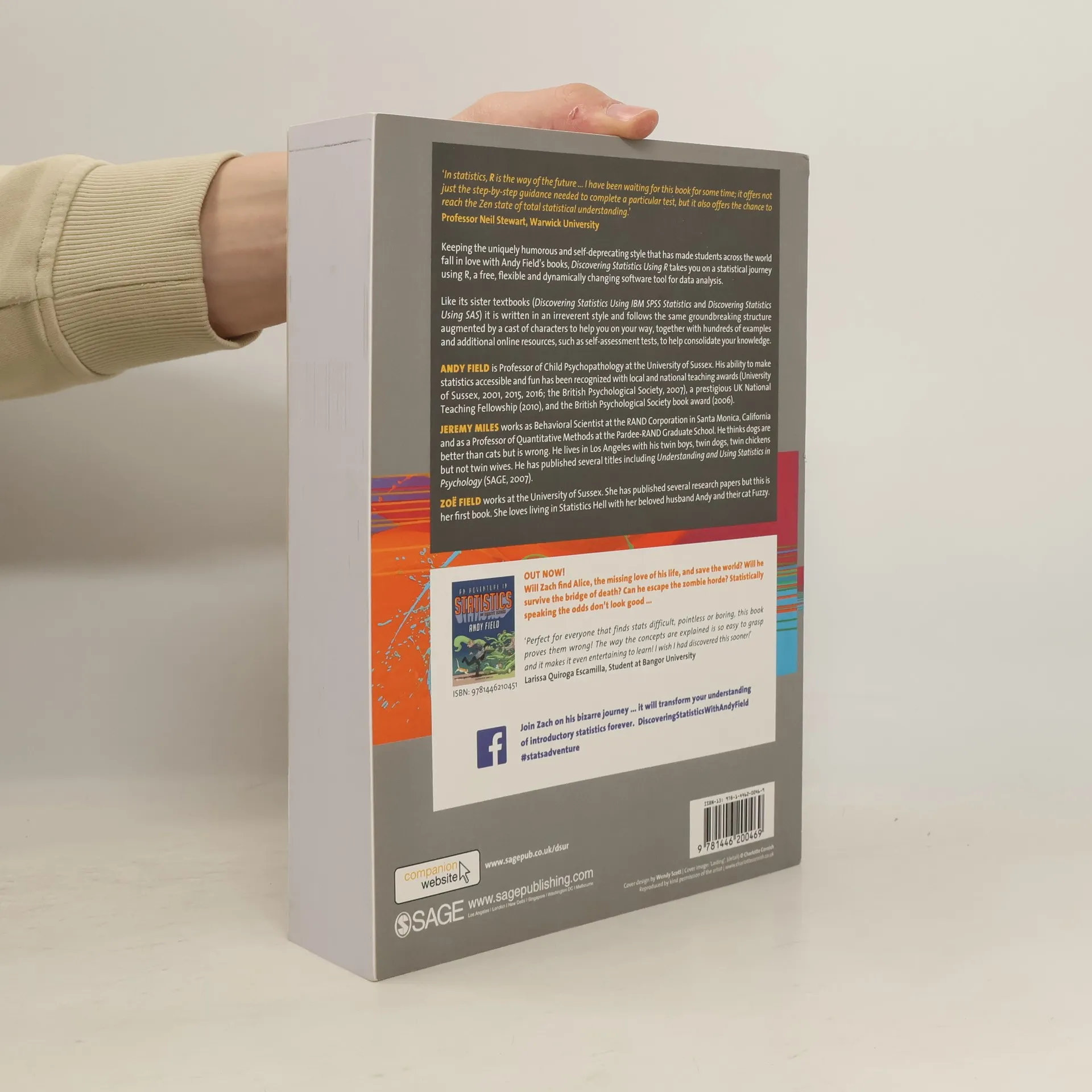 The R version of Andy Field's hugely popular Discovering Statistics Using SPSS takes students on a journey of statistical discovery using the freeware R. Like its sister textbook, Discovering Statistics Using R is written in an irreverent style and follows the same ground-breaking structure and pedagogical approach. The core material is enhanced by a cast of characters to help the reader on their way, hundreds of examples, self-assessment tests to consolidate knowledge, and additional website material for those wanting to learn more.