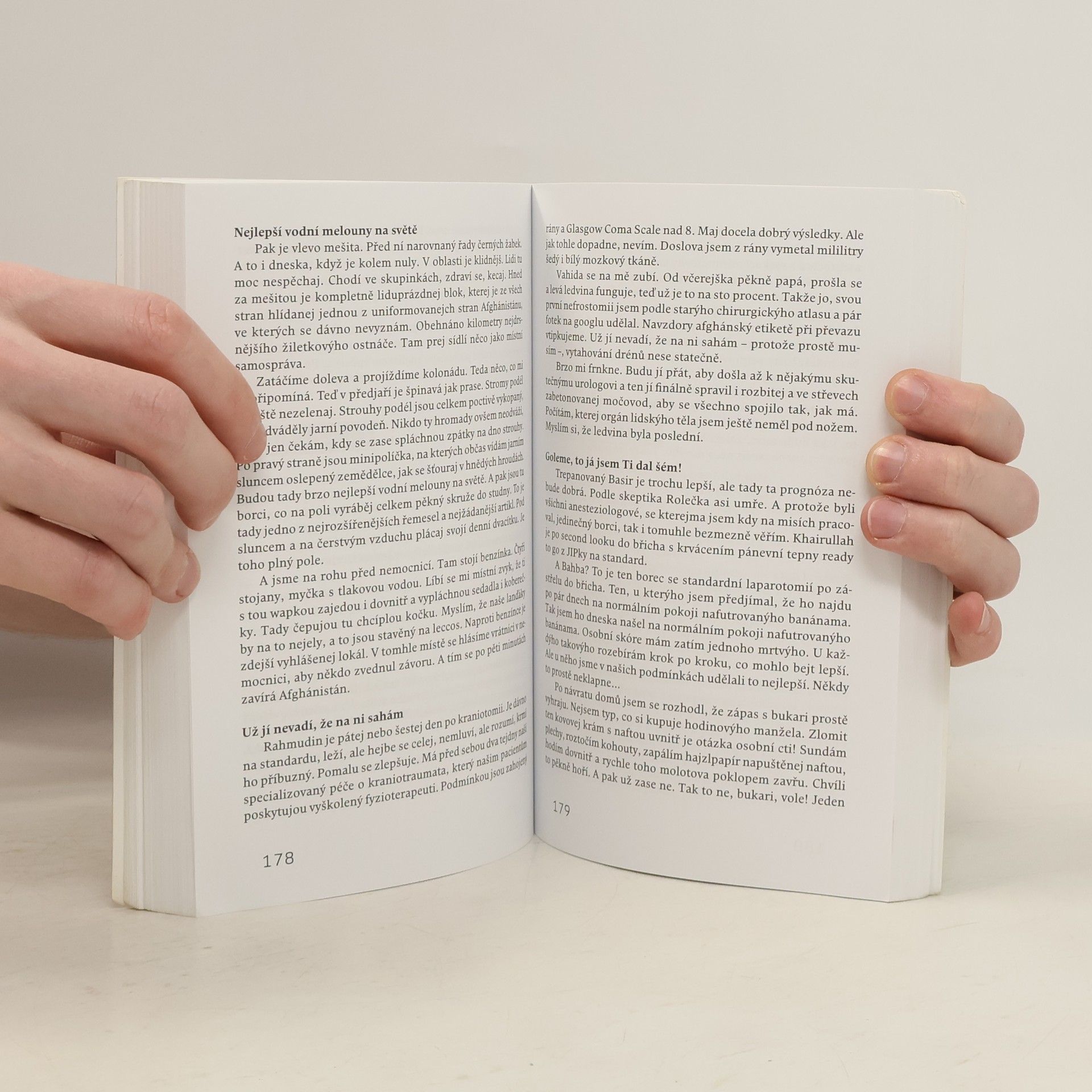 Pět měsíců s Lékaři bez hranic: „Desetiletý Rahmudin přišel s proraženou lebkou. Nevěřil jsem, že se kdy probudí z kómatu. A po operaci ten malej syčák chodí!“ Tomáš Šebek byl v Afghánistánu dvakrát, v roce 2013 a 2015, pokaždé s Lékaři bez hranic. Mezi zákroky, při nichž operoval těžce zraněné z bojů i léčil docela „běžné“ úrazy, fotil a psal. Výsledkem je soubor záznamů, které zaujmou nejen autentickou a syrovou výpovědí, ale i neotřelým pohledem na život v pusté hornaté krajině. Šebkovo vyprávění je osobité a mnohdy humorné. Je to nepatetické svědectví lékaře a přítele Afghánců, jejichž zemi už několik desetiletí sužují teror a válečné konflikty. Koupí této knihy podpoříte organizaci Lékaři bez hranic.