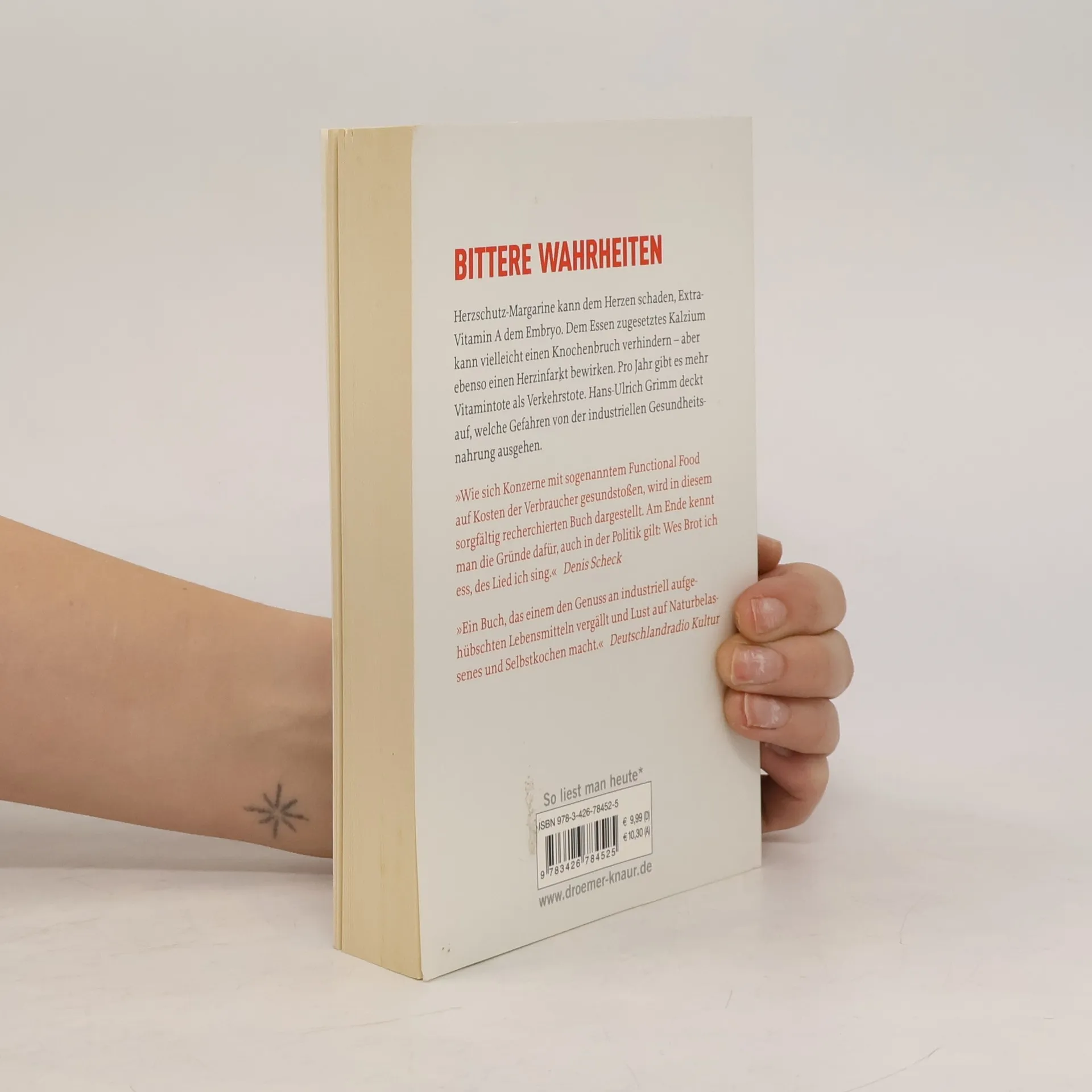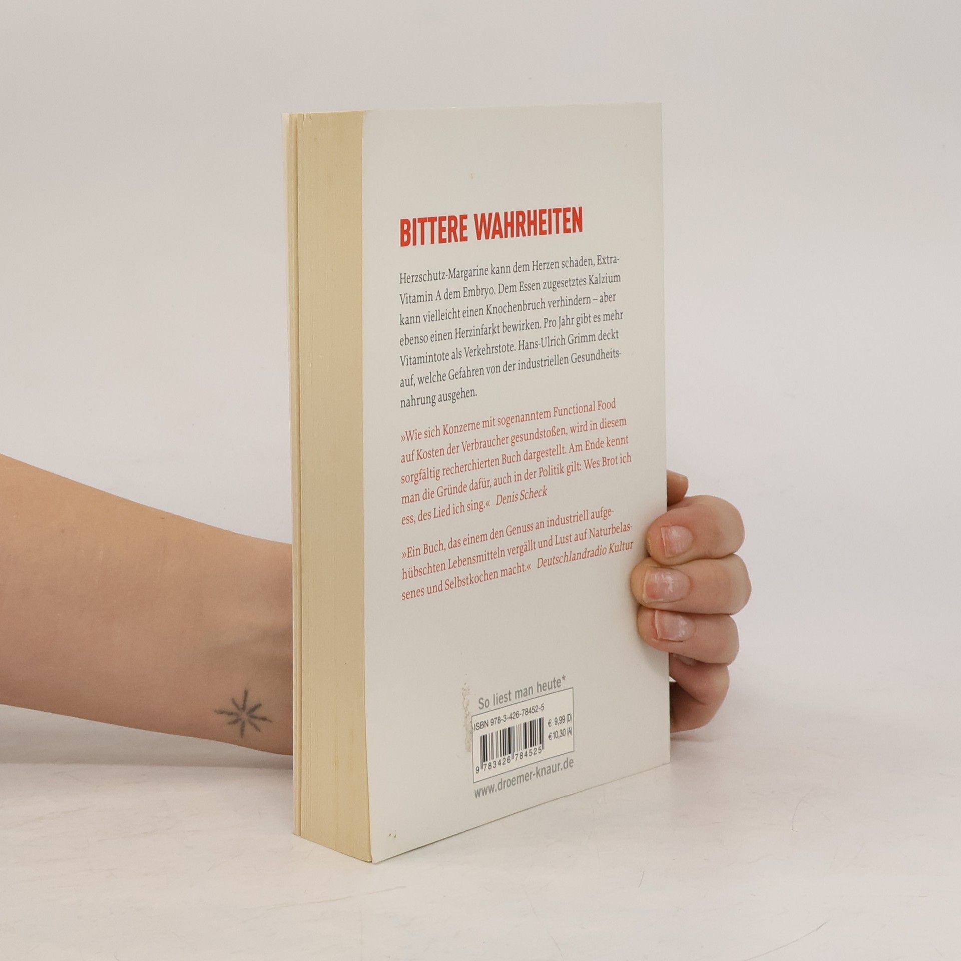 Herzschutz-Margarine kann dem Herzen schaden und zusätzliches Vitamin A dem Embryo. Dem Essen zugesetztes Kalzium verhindert vielleicht einen Knochenbruch, kann aber auch einen Herzinfarkt bewirken. Jedes Jahr gibt es mehr »Vitamintote« als Verkehrstote. Der renommierte Nahrungskritiker Hans-Ulrich Grimm zeigt, wie die Industrie für Gesundheitsnahrung unsere Gesundheit bewusst aufs Spiel setzt. Er gewährt Einblicke in das schwer durchschaubare, aber für viele lukrative Geflecht aus Einzelhandel, Lebensmittelkonzernen, fremdgesteuerter Forschung und industriefreundlicher Politik. Grimm leuchtet hinter die Werbefassade der Unternehmen und rechnet mit den Gesundheitsversprechen der Nahrungsmittelkonzerne ab.