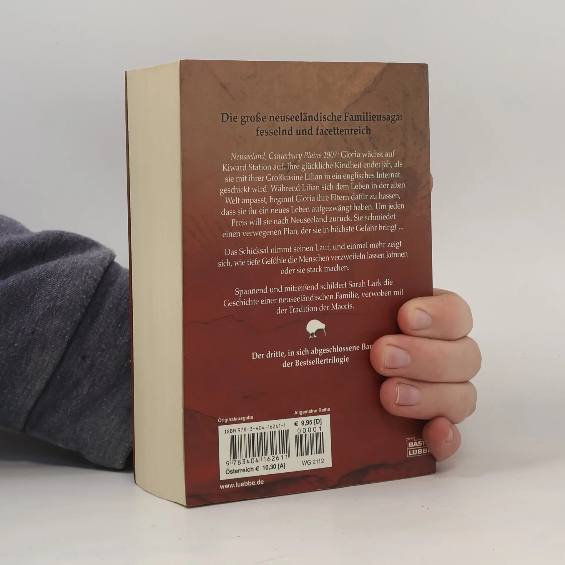 Neuseeland, Canterbury Plains 1907: Für Gloria bricht eine Welt zusammen, als sie Kiward Station verlassen muss. Mit ihrer Großcousine Lilian tritt sie die Reise nach England an, wo die beiden jungen Mädchen ein Internat besuchen sollen. Während Lilian sich rasch einlebt, fühlt sich Gloria fremd und ausgeschlossen. Um jeden Preis will sie nach Neuseeland zurück und schmiedet einen verwegenen Plan, der sie in höchste Gefahr bringt. So nimmt das Schicksal seinen Lauf, und einmal mehr zeigt sich, wie tiefe Gefühle die Menschen verzweifeln lassen - oder stark machen. Spannend und mitreißend schildert Sarah Lark die Geschichte einer neuseeländischen Familie, verwoben mit der Tradition der Maoris. Der dritte, in sich abgeschlossene Band der Bestsellertrilogie