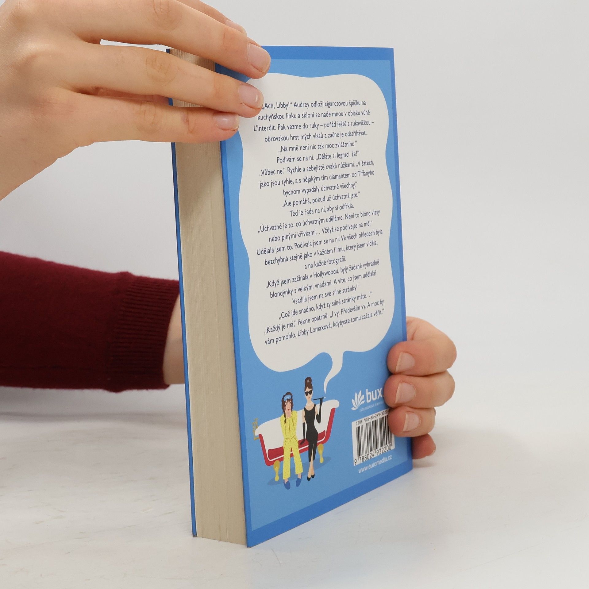 Vtipná odlehčená romance ze současnosti. Herečka Libby Lomaxová nemá v profesním ani osobním životě zrovna moc štěstí, a tak se uchyluje do světa starých filmů, kde se svět zdá být dokonalý. I ten nejhorší den, kdy se ztrapnila před celým štábem i hlavní hvězdou, krasavcem Dillonem O’Harou, se dá přežít na jejím starém gauči, když si už po tisící pustí Snídani u Tiffanyho. Jedné noci se ale stane cosi magického a vedle Libby náhle sedí skutečná Audrey Hepburnová (včetně slavných slunečních brýlí a cigaretové špičky) a je ochotná se podělit o pár životních rad. Má Libby šanci pohnout se od štěků k pořádné roli a od loserů k pořádnému muži? S Audrey po boku není nic nemožné!