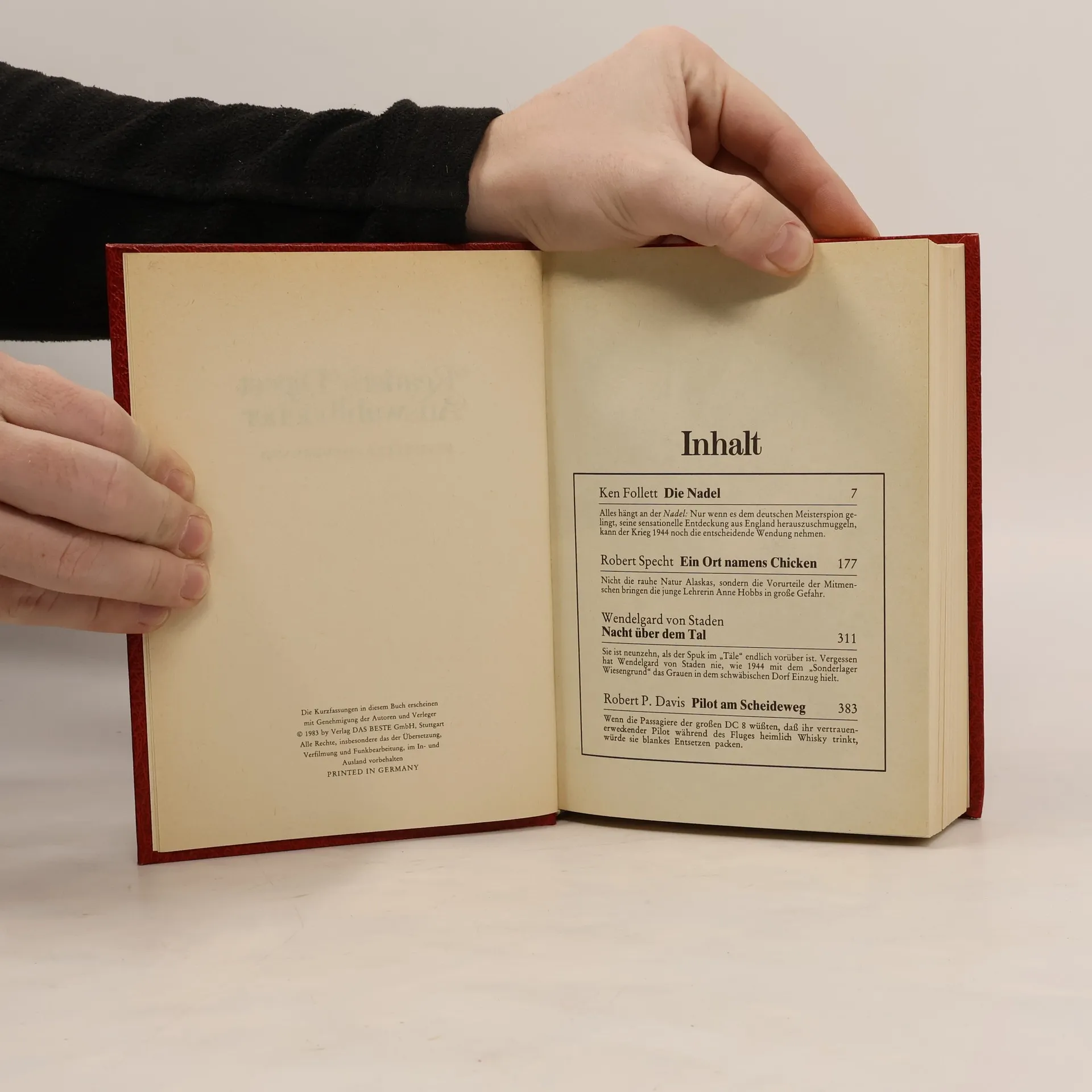 Reader's Digest Auswahlbücher. Die Nadel. Ein Ort namens Chicken. Nacht über dem Tal. Pilot am Scheideweg., Ken Follett, Robert Davis, Wendelgard von Staden, Robert Specht