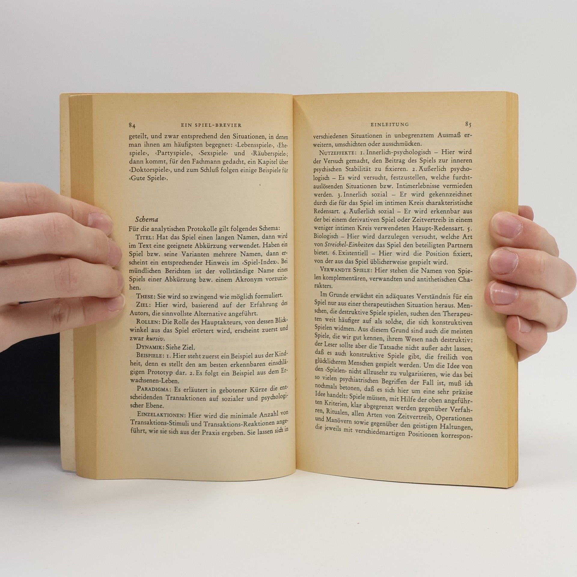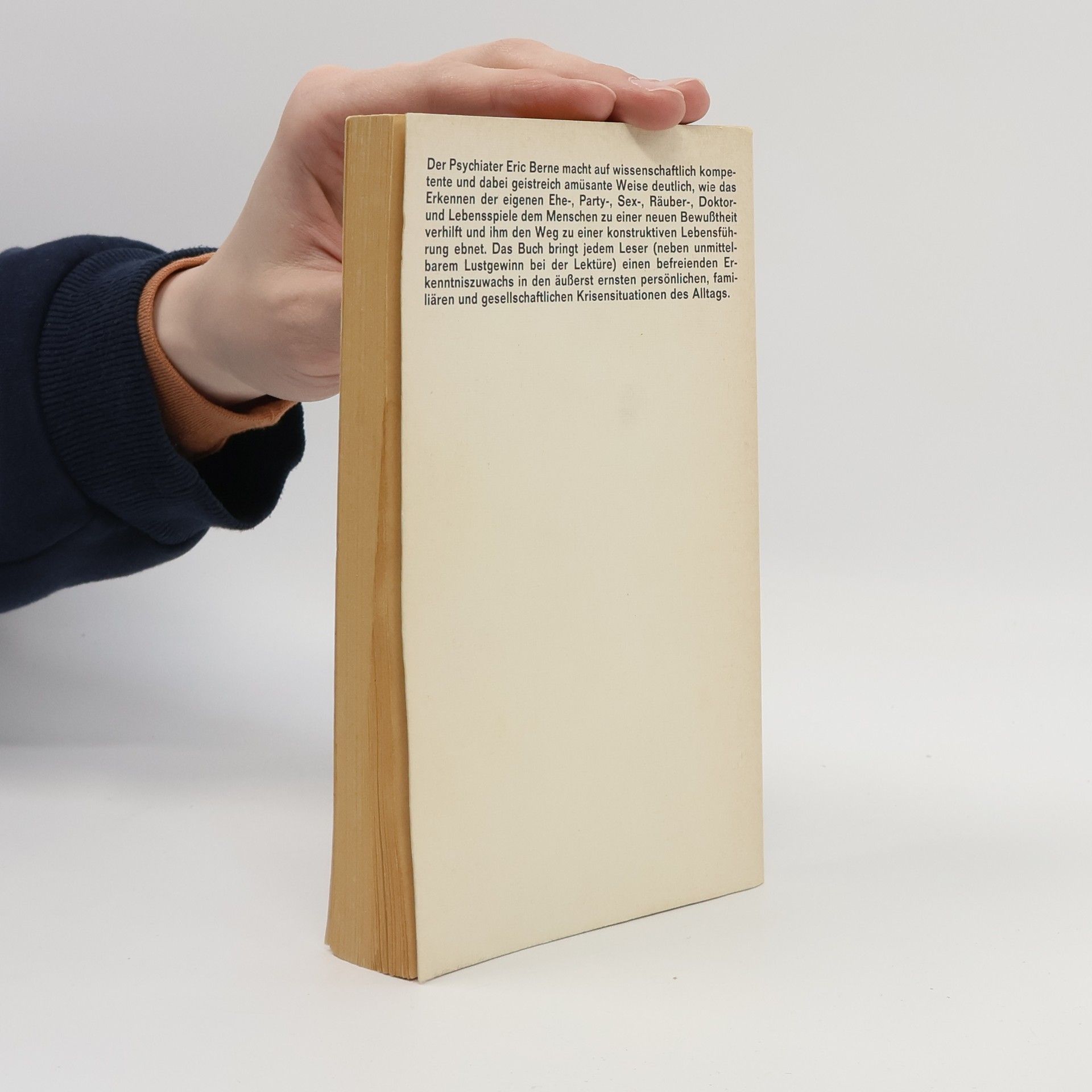 Eric Berne macht auf wissenschaftlich kompetente und dabei geistreich amüsante Weise deutlich, wie das Erkennen der eigenen Ehe-, Party-, Sex-, Räuber-, Doktor- und Lebensspiele dem Menschen zu einer neuen Bewusstheit verhilft und ihm den Weg zu einer konstruktiven Lebensführung ebnet. Das bringt neben ungetrübtem Lesevergnügen einen befreienden Erkenntniszuwachs in den ernsten persönlichen, familiären und gesellschaftlichen Krisensituationen des Alltags.