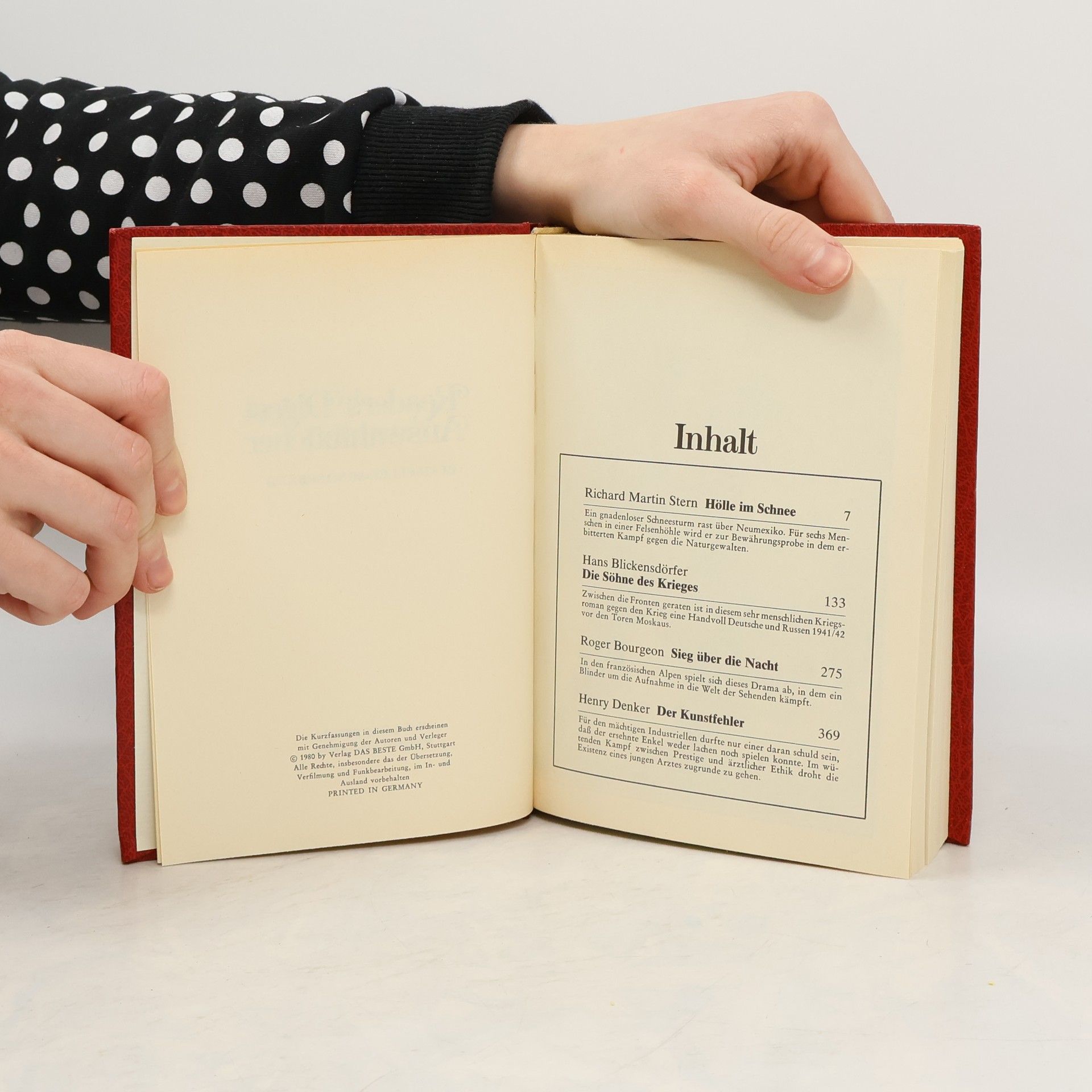 There are currently of book Reader's Digest Auswahlbücher. Hölle im Schnee. Die Söhne des Krieges. Sieg über die Nacht. Der Kunstfehler (1980) in stock.
