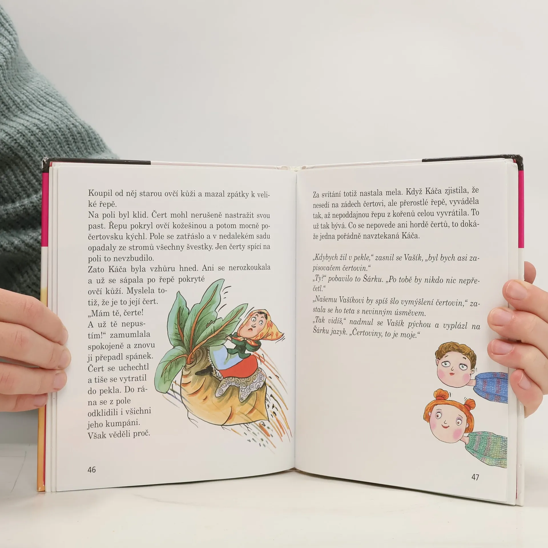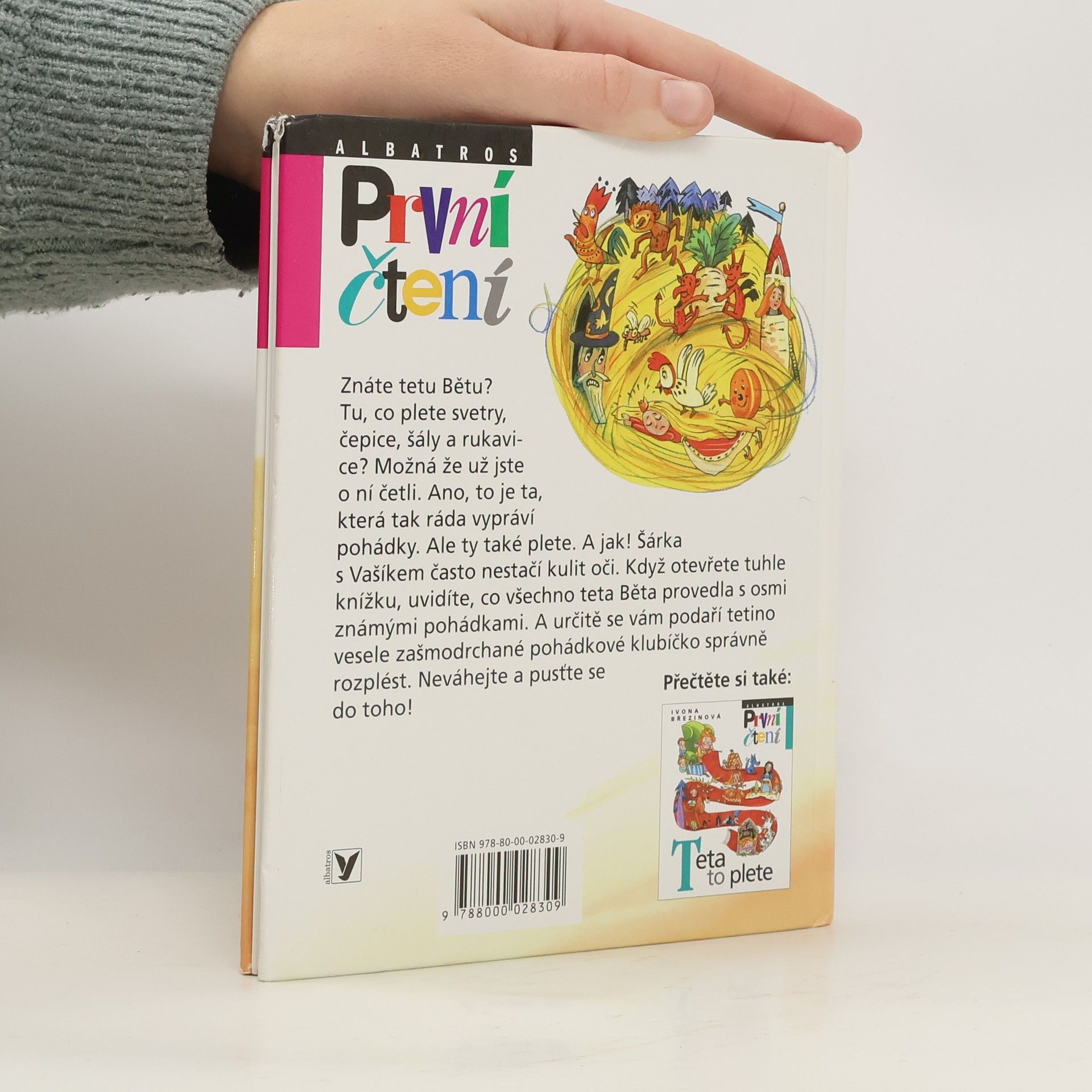 Teta Běta ráda plete. Čepice, rukavice, šály i svetry. A pohádky. Když se totiž teta pustí do jejich vyprávění, nestačí Šárka s Vašíkem kulit oči. V tetiných pohádkách dědečkův koblížek na vandru potkává pyšnou princeznu, čert s Káčou mají co dělat s velikou řepou, princeznu Zlatovlásku musí Jiřík zachraňovat jako kdysi slepička svého kohoutka a Otesánek se kamarádí s podivným chlapíkem a princem, kteří jako kdyby vyskočili z pohádky o Dlouhém, Širokém a Bystrozrakém. Malí čtenáři taky budou kulit oči, ale báječně se s pohádkami pobaví a zároveň si vyzkoušejí svou znalost těch nejznámějších vyprávění. A přestože jsou veselé pohádky zašmodrchané v tetině klubíčku, určitě se všem podaří pohádkové klubko správně rozplést!