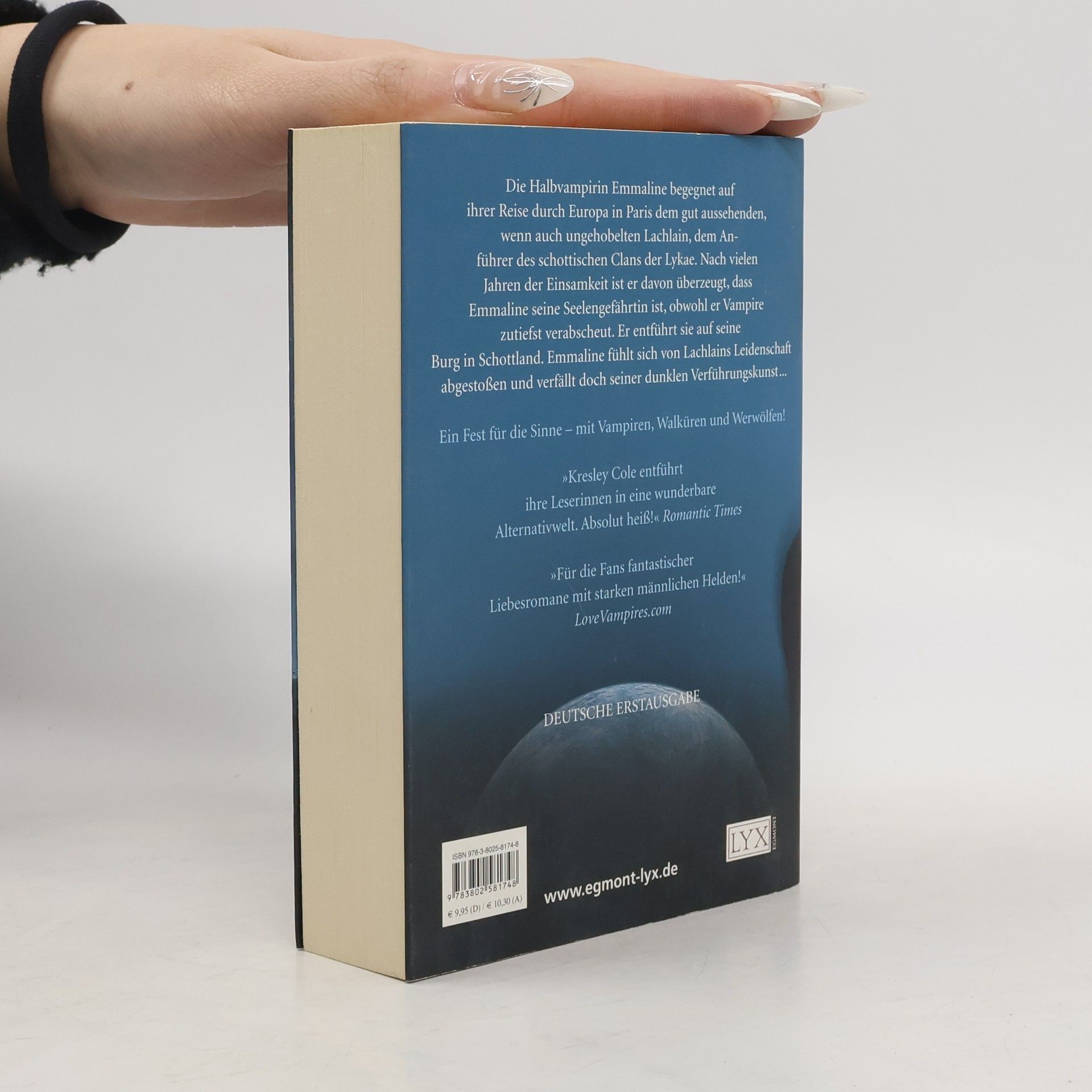Auf den Spuren ihrer verstorbenen Eltern reist die junge Halbvampirin Emmaline durch Europa. In Paris begegnet ihr der gut aussehende, wenn auch reichlich ungehobelte Lachlain MacRieve, der Anführer des schottischen Klans der Lykae. Nach hunderten Jahren der Einsamkeit ist Lachlain fest davon überzeugt, dass Emmaline seine Seelengefährtin ist, obwohl er Vampire eigentlich zutiefst verabscheut. Er entführt sie auf seine Burg in Schottland, um sie zu seiner Geliebten zu machen. Emmaline fühlt sich von Lachlains ungezähmter Leidenschaft abgestoßen und verfällt doch mehr und mehr seiner dunklen Verführungskunst ...