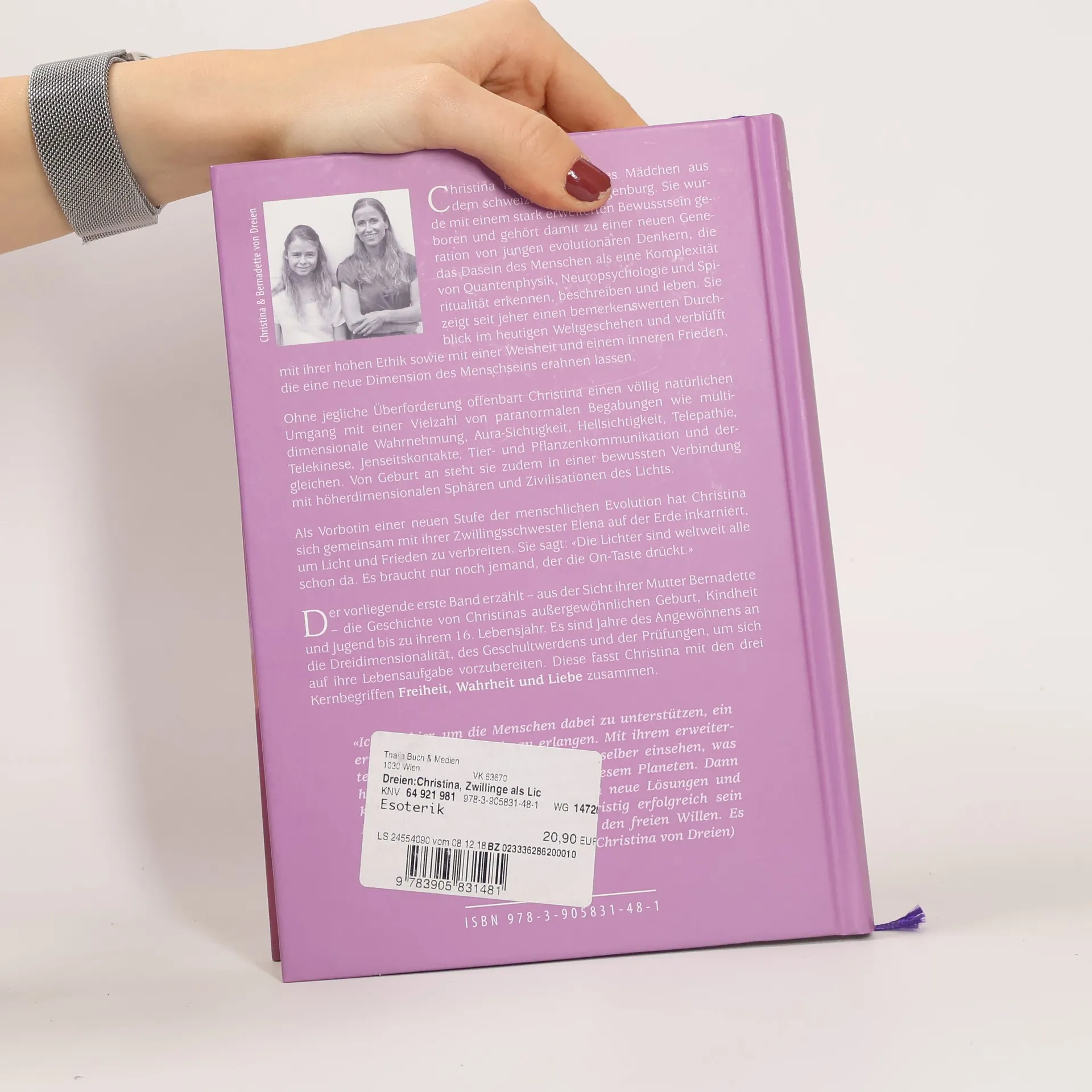 Christina ist ein 16-jähriges Mädchen aus dem Toggenburg, das mit einem stark erweiterten Bewusstsein geboren wurde. Sie gehört zu einer neuen Generation von jungen Denkern, die das menschliche Dasein als eine Komplexität aus Quantenphysik, Neuropsychologie und Spiritualität erkennen. Christina beeindruckt mit ihrer hohen Ethik, Weisheit und einem inneren Frieden, der eine neue Dimension des Menschseins erahnen lässt. Sie zeigt einen natürlichen Umgang mit paranormalen Fähigkeiten wie multidimensionaler Wahrnehmung, Aura-Sichtigkeit, Hellsichtigkeit, Telepathie und Tierkommunikation. Von Geburt an ist sie in bewusster Verbindung mit höheren Dimensionen und Zivilisationen des Lichts. Gemeinsam mit ihrer Zwillingsschwester Elena ist sie auf der Erde inkarniert, um Licht und Frieden zu verbreiten. Band 1 erzählt aus der Sicht ihrer Mutter Bernadette von Christinas außergewöhnlicher Geburt, Kindheit und Jugend bis zu ihrem 16. Lebensjahr. Diese Jahre sind geprägt von der Anpassung an die Dreidimensionalität und der Vorbereitung auf ihre Lebensaufgabe, die sie mit den Begriffen Freiheit, Wahrheit und Liebe zusammenfasst. Christina möchte den Menschen helfen, ein erweitertes Bewusstsein zu erlangen, um neue Lösungen für die Herausforderungen der Welt zu finden. Doch letztlich liegt die Entscheidung im freien Willen der Menschen.