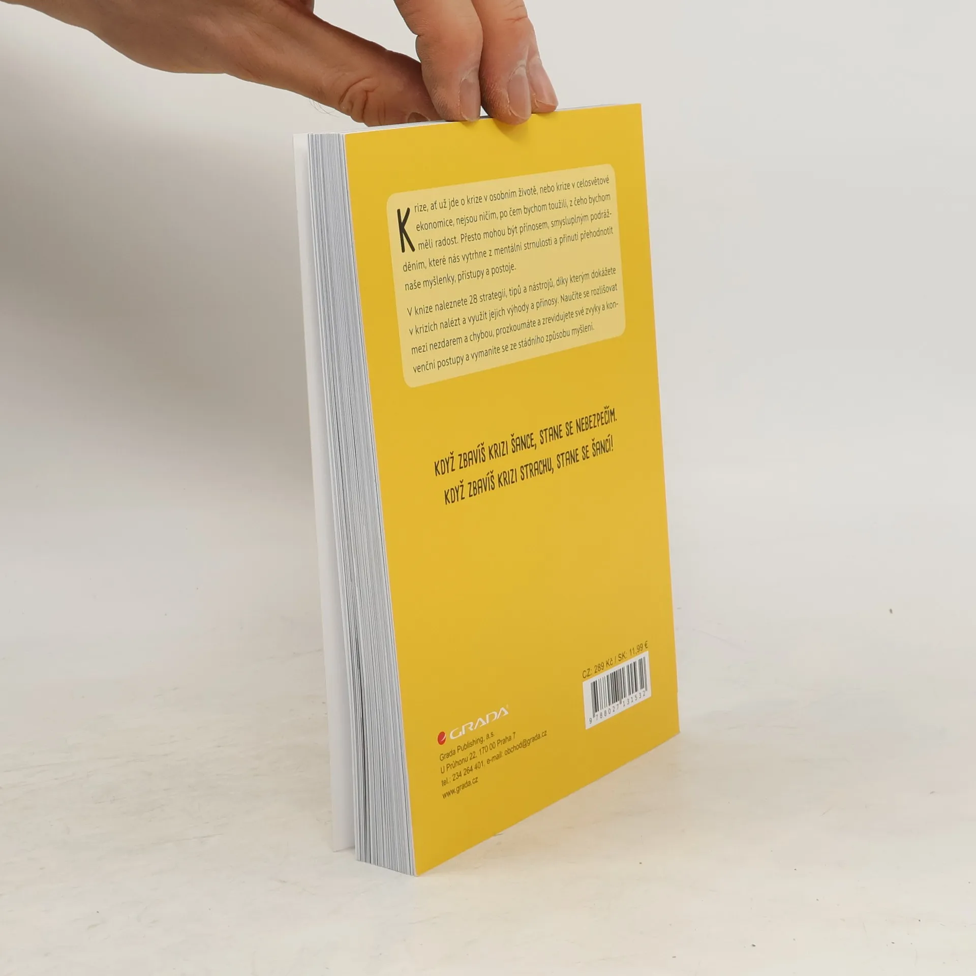 Krize, ať už jde o krize v osobním životě, nebo krize v celosvětové ekonomice, nejsou ničím, po čem bychom toužili, z čeho bychom měli radost. Přesto mohou být přínosem, smysluplným podrážděním, které nás vytrhne z mentální strnulosti a přinutí přehodnotit naše myšlenky, přístupy a postoje. V knize naleznete 28 strategií, tipů a nástrojů, díky kterým dokážete v krizích nalézt a využít jejich výhody a přínosy. Naučíte se rozlišovat mezi nezdarem a chybou, prozkoumáte a zrevidujete své zvyky a konvenční postupy a vymaníte se ze stádního způsobu myšlení. KDYŽ ZBAVÍŠ KRIZI ŠANCE, STANE SE NEBEZPEČÍM. KDYŽ ZBAVÍŠ KRIZI STRACHU, STANE SE ŠANCÍ!