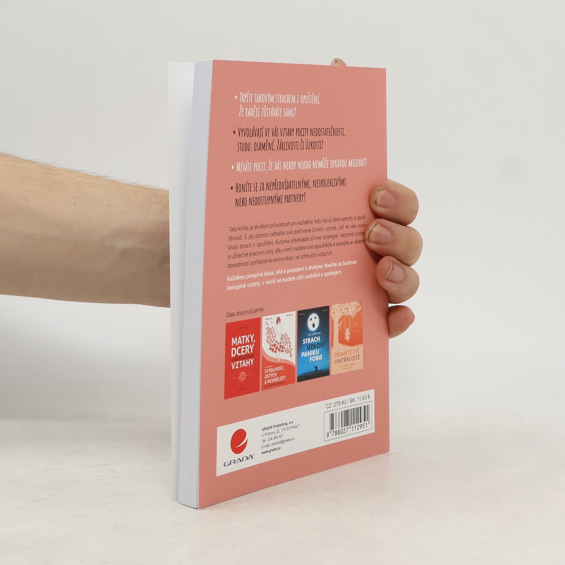 Trpíte tak silným strachem z opuštění, že raději zůstáváte sami? Vyvolávají ve vás vztahy pocity nedostatečnosti, studu, osamění, žárlivosti či úzkosti? Míváte pocit, že vás nikdy nikdo nemůže opravdu milovat? Honíte se za nepředvídatelnými, nespolehlivými nebo nedostupnými partnery? Tato kniha je skvělým průvodcem pro každého, kdo má už dost samoty a opuštěnosti. S její pomocí odhalíte své pokřivené životní vzorce, jež ve vás vyvolávají strach z opuštění. Autorka předkládá účinné strategie, názorná cvičení a užitečné pracovní listy, díky nimž najdete své spouštěče a osvojíte si vědomé dovednosti potřebné ke komunikaci ve zdravých vztazích. Každému prospívá láska, klid a propojení s druhými. Naučte se budovat láskyplné vztahy, v nichž se budete cítit uvolnění a spokojení.