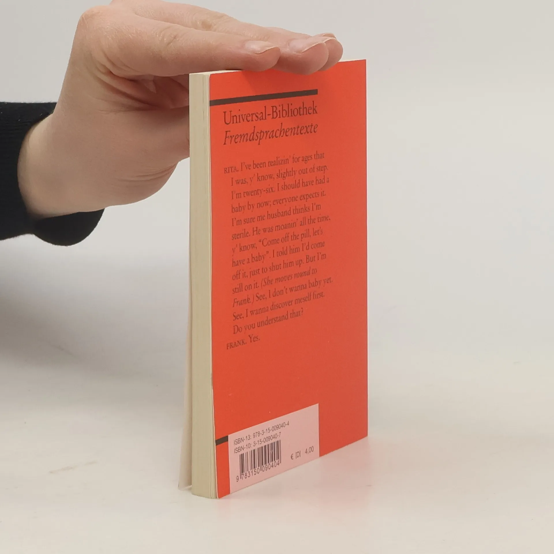 Englische Literatur in Reclams Roter Reihe: das ist der englische Originaltext – ungekürzt und unbearbeitet mit Worterklärungen am Fuß jeder Seite, Nachwort und Literaturhinweisen. Susan White, eine verheiratete Friseurin um die zwanzig Jahre, entschließt sich, ihre unvollständige Schulausbildung mit einem Examensabschluss fortzusetzen. Dazu belegt sie unter dem falschen Namen Rita Kurse an der „Open University“, wo sie auf den desillusionierten, versoffenen Literaturlehrer Frank Bryant trifft. Die Ankunft von Rita stellt dessen Welt auf den Kopf und begeistert von ihrer frischen Art, stürzt er sich in ihre Ausbildung. Als die Entwicklung von Rita Fortschritte macht, verliebt sich Frank sogar in sie ... Englische Lektüre: Niveau B2–C1 (GER) Sprachen: Deutsch, Englisch