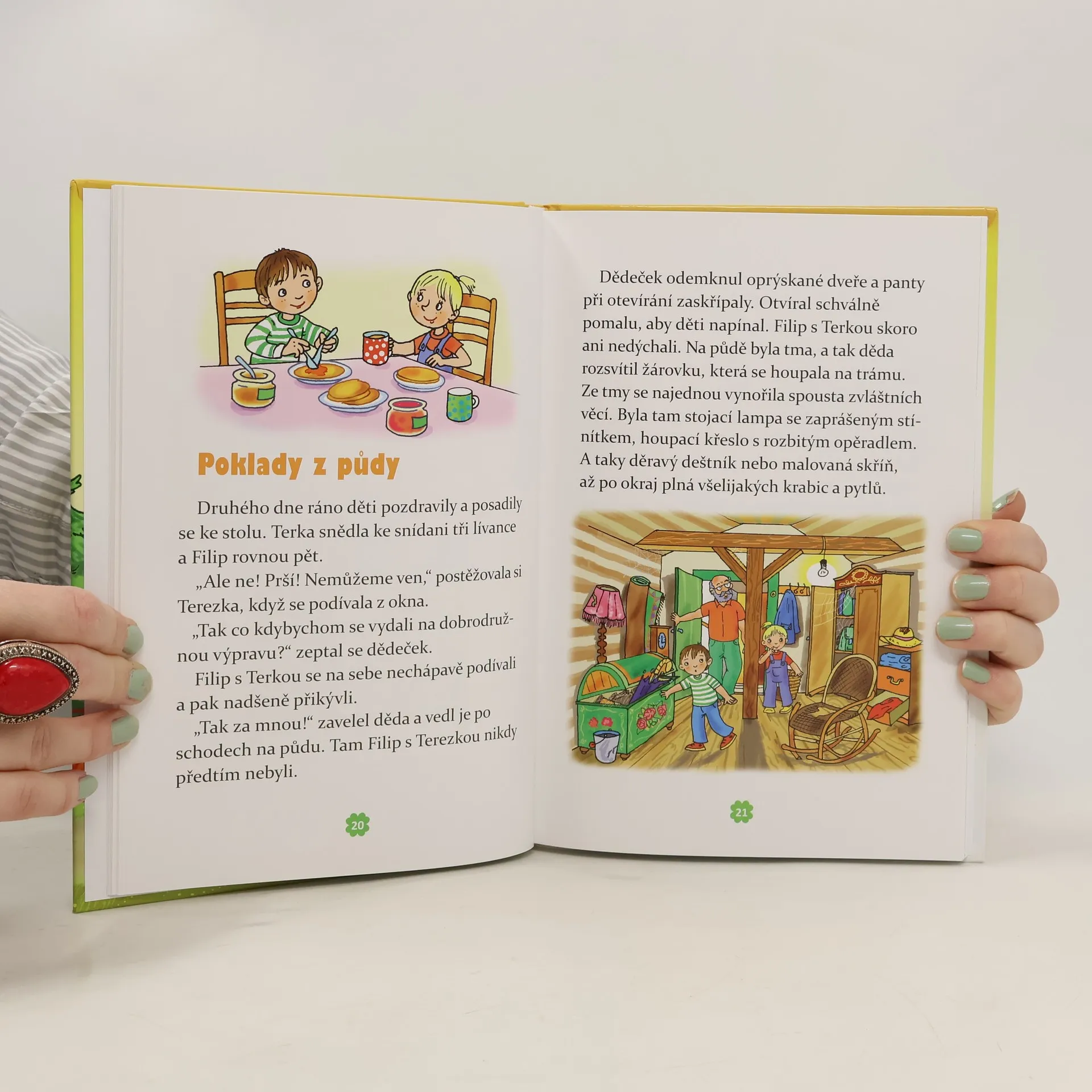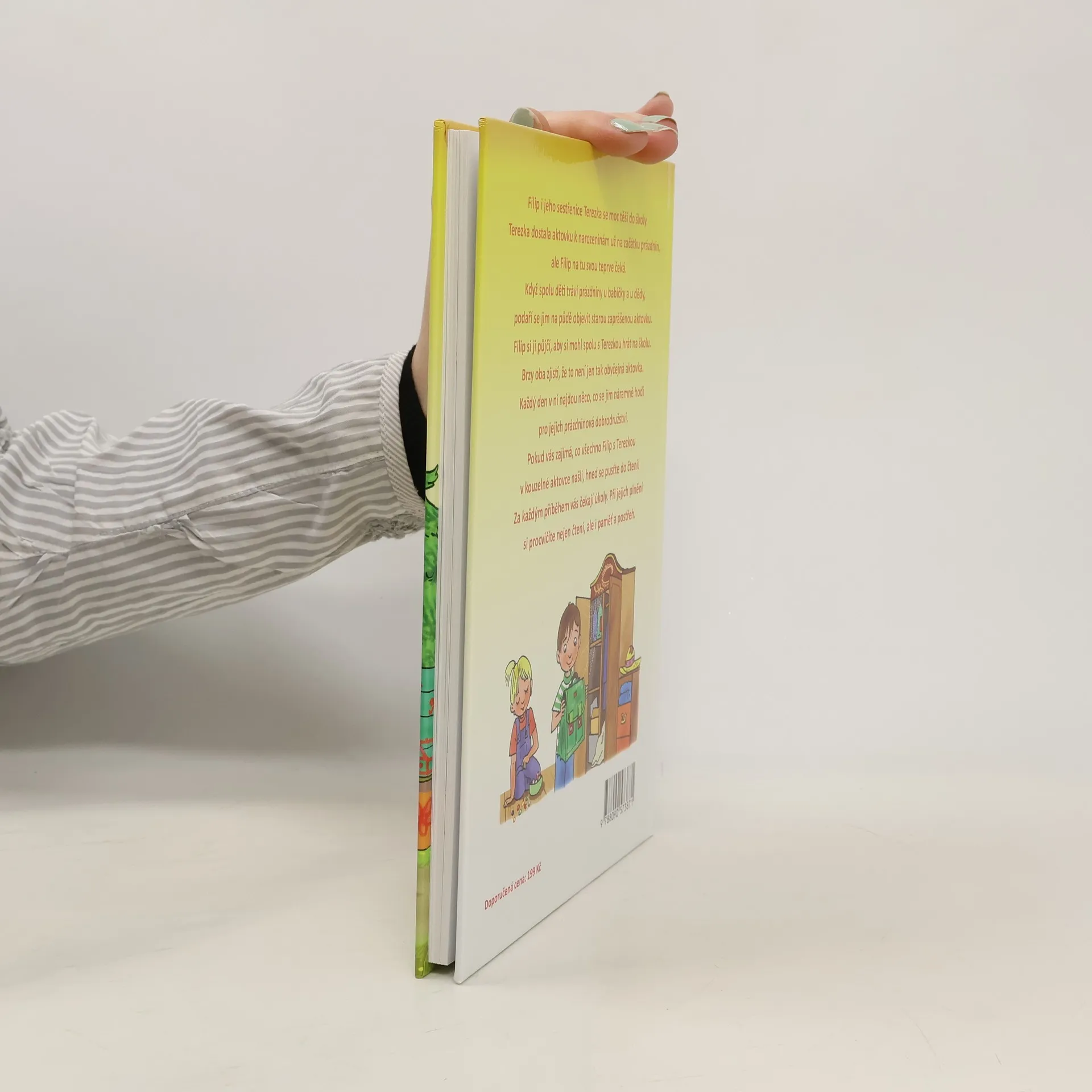 Filip i jeho sestřenice Terezka se moc těší do školy. Terezka dostala aktovku k narozeninám už na začátku prázdnin, ale Filip na tu svou teprve čeká. Když spolu děti tráví prázdniny u babičky a u dědy, podaří se jim na půdě objevit starou zaprášenou aktovku. Filip si ji půjčí, aby si mohl spolu s Terezkou hrát na školu. Brzy oba zjistí, že to není jen tak obyčejná aktovka. Každý den v ní najdou něco, co se jim náramně hodí pro jejich prázdninová dobrodružství. Pokud vás zajímá, co všechno Filip s Terezkou v kouzelné aktovce našli, hned se pusťte do čtení! Za každým příběhem na vás čekají úkoly. Při jejich plnění si procvičíte nejen čtení, ale i paměť a postřeh.