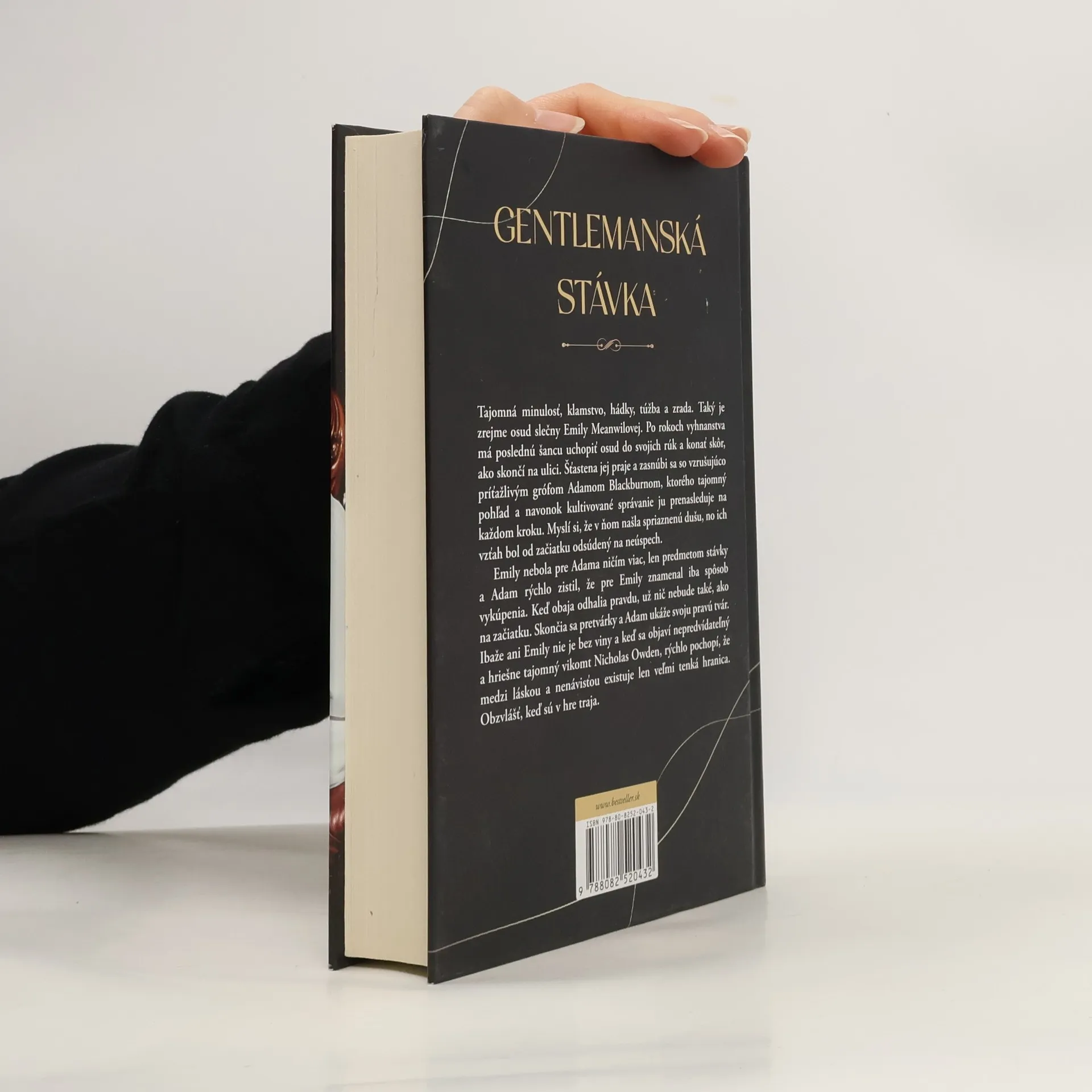 Tajomná minulosť, klamstvo, hádky, túžba a zrada. Taký je zrejme osud slečny Emily Meanwilovej. Po rokoch vyhnanstva má poslednú šancu uchopiť osud do svojich rúk a konať skôr, ako skončí na ulici. Šťastena jej praje a zasnúbi sa so vzrušujúco príťažlivým grófom Adamom Blackburnom, ktorého tajomný pohľad a navonok kultivované správanie ju prenasleduje na každom kroku. Myslí si, že v ňom našla spriaznenú dušu, no ich vzťah bol od začiatku odsúdený na neúspech.Emily nebola pre Adama ničím viac, len predmetom stávky a Adam rýchlo zistil, že pre Emily znamenal iba spôsob vykúpenia. Keď obaja odhalia pravdu, už nič nebude také, ako na začiatku. Skončia sa pretvárky a Adam ukáže svoju pravú tvár.Ibaže ani Emily nie je bez viny a keď sa objaví nepredvídateľný a hriešne tajomný vikomt Nicholas Owden, rýchlo pochopí, že medzi láskou a nenávisťou existuje len veľmi tenká hranica. Obzvlášť, keď sú v hre traja.