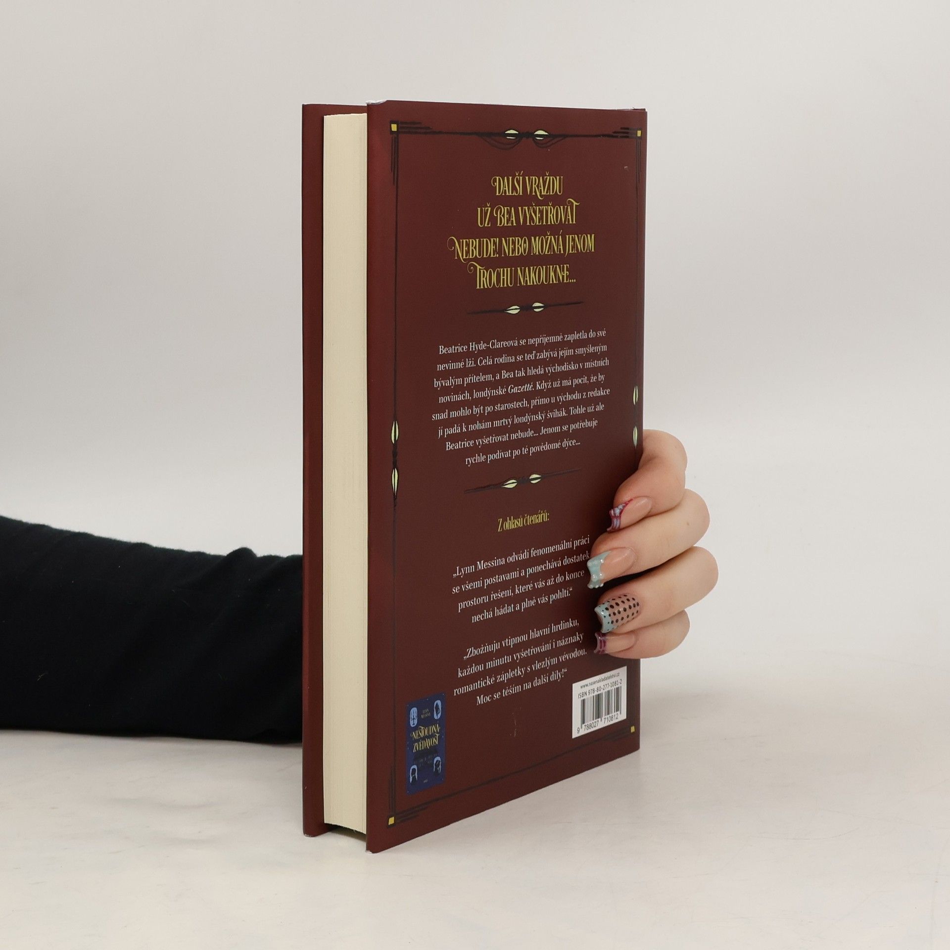 Jakkoli si Beatrice Hyde-Clareová libovala ve výzvě, jíž bylo pátrání po vrahovi na večírku v Lake District, rozhodně se nepovažuje za amatérskou vyšetřovatelku. Když jí tedy přímo u vchodu do London Gazette padne mrtvý k nohám jistý londýnský švihák, necítí Bea žádné nutkání to vyšetřovat. Koneckonců je to zpravodajská kancelář a reportéři se už případem zabývají stejně jako úřady. A ona sama má vlastních problémů dost – třeba tu neškodnou lež, která se jaksi vyvinula ve směšně nafouknutý příběh. Opravdu, vůbec ji to nezajímá. Až na to, že dýka, která nebohého hraběte zabila, se zdá být znepokojivě povědomá... A tak se Bea vydává do Britského muzea, protože si nemůže odpočinout, dokud své podezření nepotvrdí, zatímco se snaží rozptýlit obavy své rodiny a pochopit nutkání vévody z Kesgrave. Pohledný lord totiž nemá důvod ztrácet čas řešením záhady po boku plaché staré panny. A přesto se objevuje všude, kam Bea jde.
