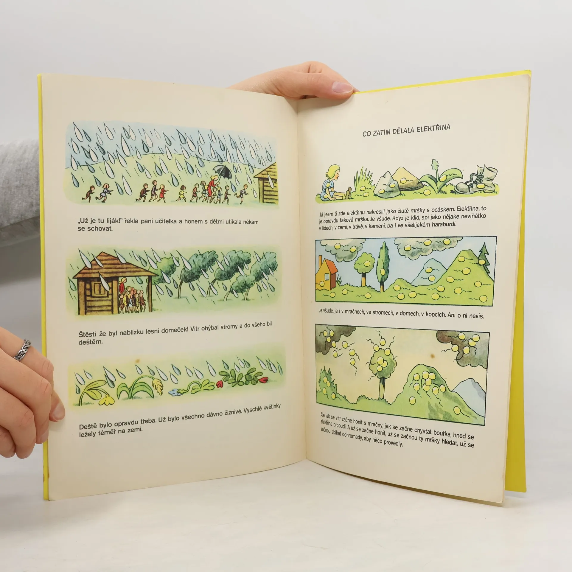 Oblíbená dětská knížka od slavného autora a ilustrátora Ondřeje Sekory, kterou si mnozí z nás pamatují z dětských let. Srozumitelnou a zábavnou formou seznamuje mladé čtenáře s fascinující oblastí meteorologie a vodohospodářství. Vysvětluje řadu přírodní jevů, jako jsou mraky, déšť, bouřku, slunce či cyklus střídání dne a noci, to vše zároveň zasazuje do kontextu lidského působení. Čtenář se proto dočte také o přehradách, větrolamech, zavodňovacích kanálech a dalších technologických možnostech využití přírodních živlů. Kniha je bohatě ilustrovaná, čtenáře nezahlcuje nadbytečnými faktografickými údaji a je radost si v ní listovat. Nostalgický klenot poprvé vydaný na začátku padesátých let, který vykouzlí úsměv na tváři i dnes. Dětem i dospělým.