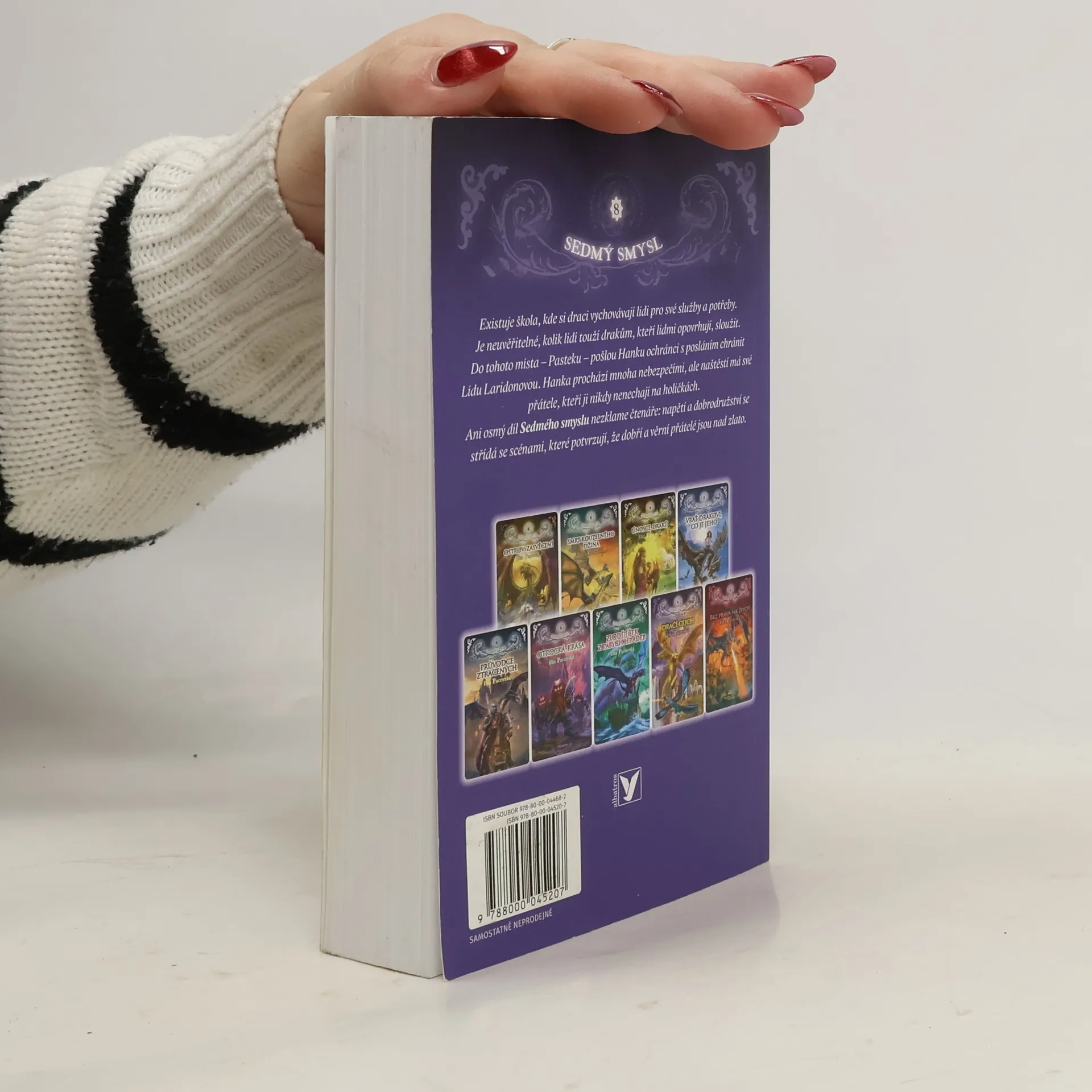 Existuje škola, kde si draci vychovávají lidi pro své služby a potřeby. Je neuvěřitelné, kolik lidí touží drakům, kteří lidmi opovrhují, sloužit. Do tohoto místa – Pasteku – pošlou Hanku ochránci s posláním chránit Lídu Laridonovou. Hanka prochází mnoha nebezpečími, ale naštěstí má své přátele, kteří ji nikdy nenechají na holičkách. Ani osmý díl Sedmého smyslu nezklame čtenáře: napětí a dobrodružství se střídá se scénami, které potvrzují, že dobří a věrní přátelé jsou nad zlato.