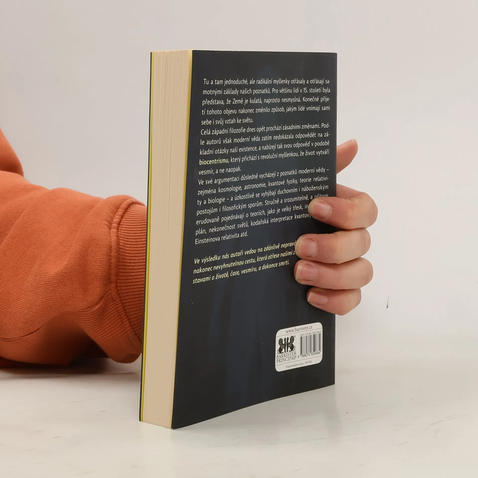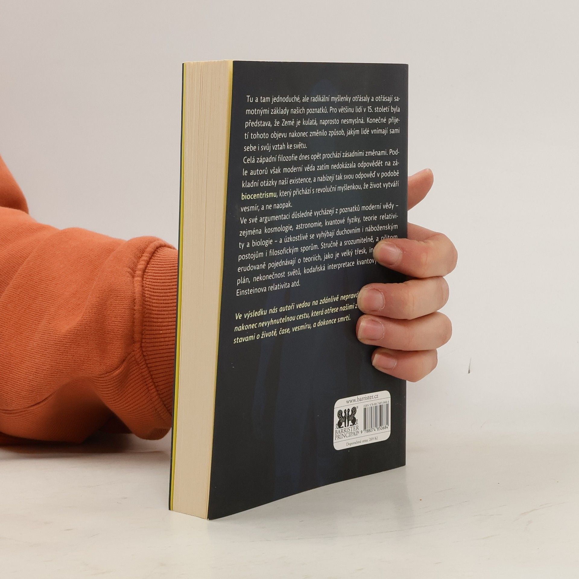 Kniha dvou známých amerických autorů, biologa Roberta Lanzy a astronoma Boba Bermana, přináší strhující pohled, který převrací naše dlouho zavedené názory na svět. Radikální myšlenky autorů, podobně jako kdysi představa kulaté Země, mění naše vnímání sebe sama a našeho vztahu k okolnímu světu. Moderní věda zatím nedokázala odpovědět na základní otázky existence, a tak autoři představují biocentrismus, který tvrdí, že život vytváří vesmír, nikoli naopak. Vycházejí z poznatků moderní vědy, jako jsou kosmologie, kvantová fyzika a teorie relativity, a vyhýbají se duchovním a náboženským postojům. Srozumitelně a erudovaně se zabývají teoriemi, jako je velký třesk či Einsteinova relativita. Realita, jak ji vnímáme, je proces spojený s naším vědomím; vnější a vnitřní vjemy jsou nerozlučně propojeny. Čas a prostor nejsou nezávislé entity, ale formy našeho vnímání. Autoři nás vedou na cestu, která otřese našimi základními představami o životě, čase, vesmíru a smrti.
