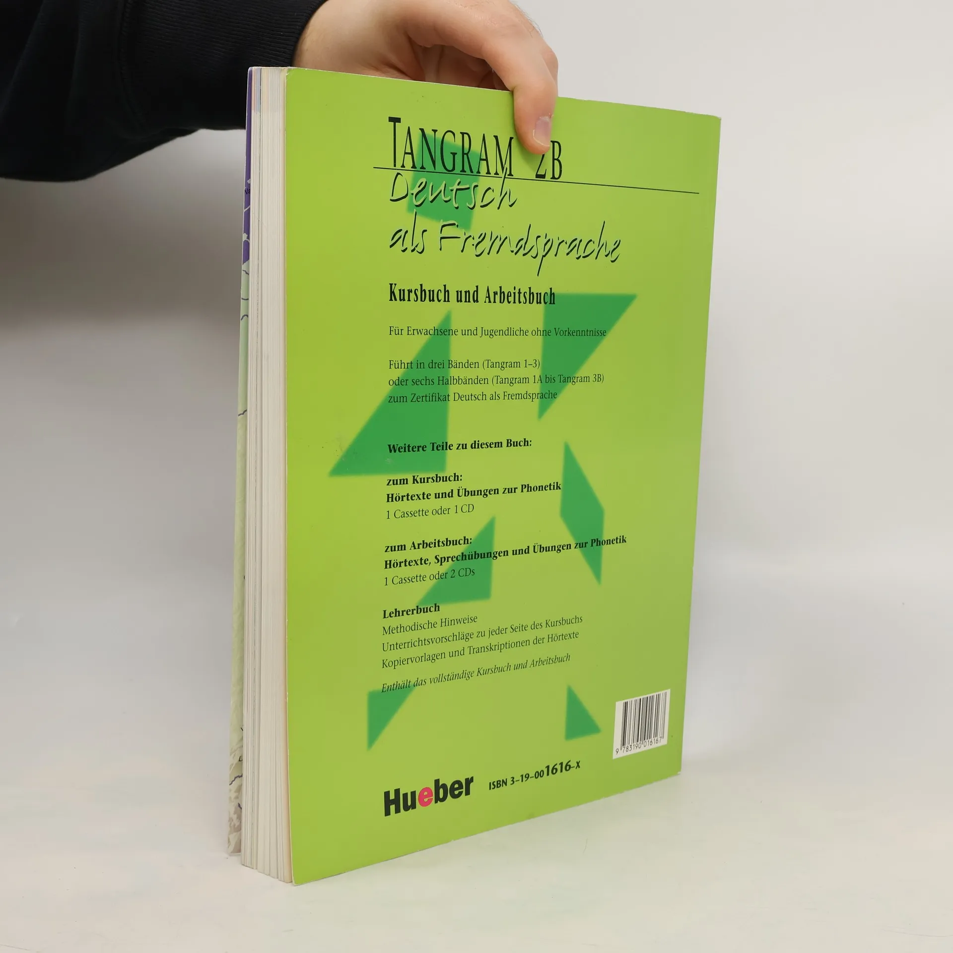 Voraussetzungen: Kenntnisstand von Tangram 2A Zielgruppe: Jugendliche und junge Erwachsene ohne Vorkenntnisse der deutschen Sprache in Grundstufenkursen an Volkshochschulen, Goethe-Instituten, Universitäten, privaten Sprachschulen und anderen Institutionen weltweit, an denen Deutsch als Fremdsprache unterrichtet wird. Tangram, unser neues Lehrwerk für die Grundstufe, führt in zwei Bänden oder vier Halbbänden mit abschließendem Zertifikatsvorbereitungskurs zum neuen Zertifikat Deutsch und somit im Rahmen der Zertifikatsvorgaben zum Global-Lernziel „Handlungsfähigkeit in deutschsprachiger Gesellschaft“. Die Lektionen behandeln so abwechslungsreiche Themen wie Wünsche und Träume, Berufe, Konflikte und Lösungen, Gemeinsinn statt Egoismus und Medienwelten. Es sind ergänzende Übungen zur Grammatik, Phonetik und Lerntechnik enthalten. Am Ende jeder Lektion wird in einem Memo Stoff vorangegangener Lektionen wiederholt.