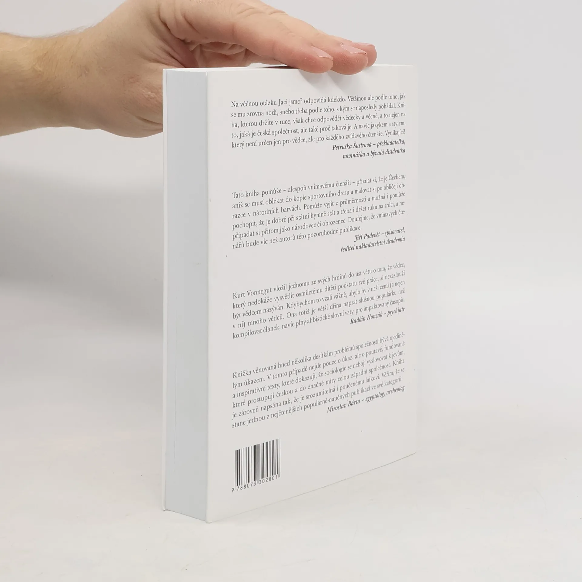 Co si Češi nalhávají o Češích? Proč nedůvěřují policii a soudům? Co si dnes myslíme o sametové revoluci nebo o rozdělení Československa? Může mít jméno vliv na naši kariéru? Proč nám nevadí bezpečnostní kamery? Je u nás náboženství mrtvé? Jsou české hodnoty něčím výjimečné? Je česká společnost skutečně tak tolerantní, jak se traduje? Jaké je vůbec v České republice „Názorové klima“? Tato populárně-vědná kniha nastiňuje témata spojená s výzkumem společnosti. Pokouší se přístupnou formou seznámit čtenáře-neodborníka s prací sociologů. Vždyť mnohé otázky, které sociologie zkoumá, jsou přímo spojené s rozhodováním a opatřeními, jež mají dopad na nás všechny.