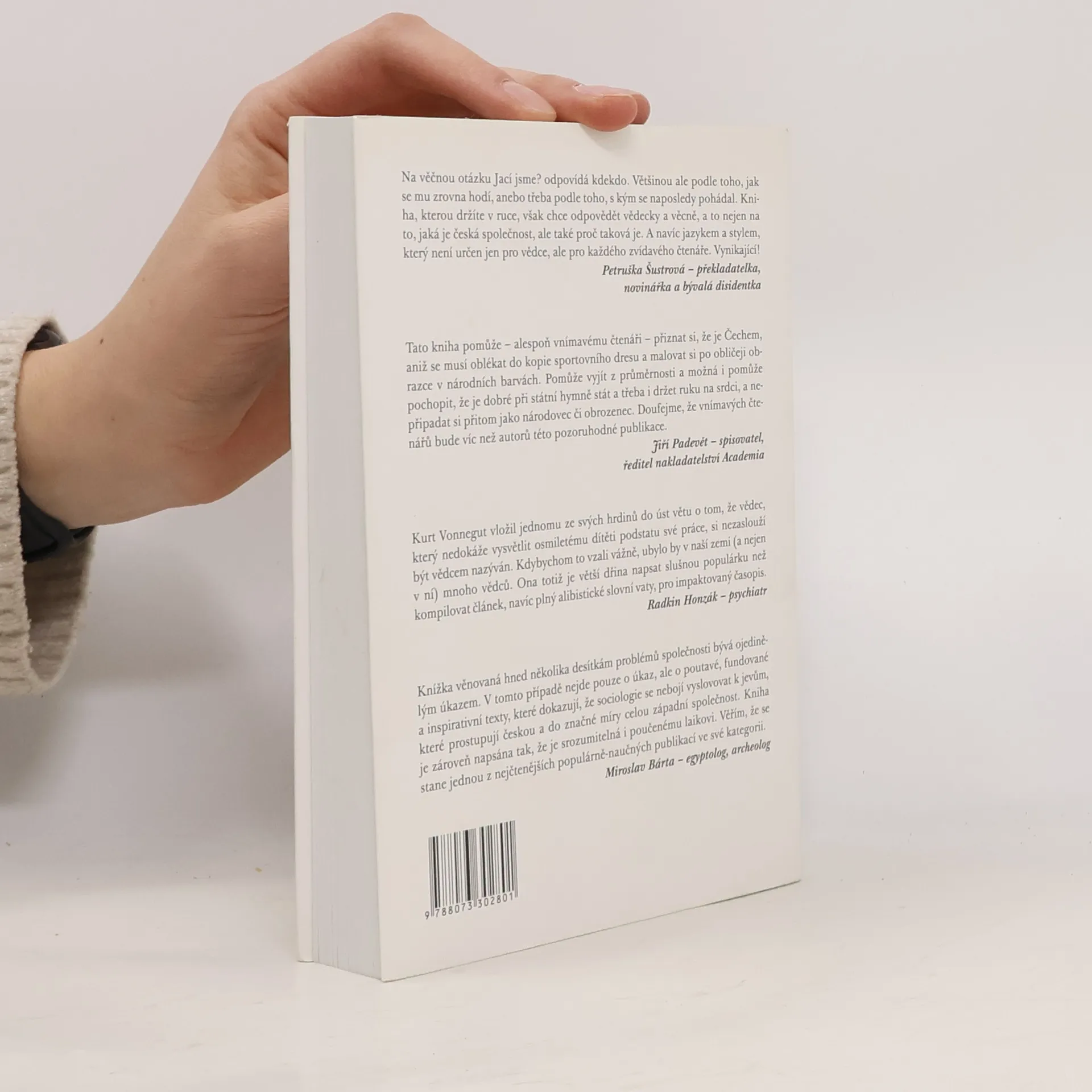 Co si Češi nalhávají o Češích? Proč nedůvěřují policii a soudům? Co si dnes myslíme o sametové revoluci nebo o rozdělení Československa? Může mít jméno vliv na naši kariéru? Proč nám nevadí bezpečnostní kamery? Je u nás náboženství mrtvé? Jsou české hodnoty něčím výjimečné? Je česká společnost skutečně tak tolerantní, jak se traduje? Jaké je vůbec v České republice „Názorové klima“? Tato populárně-vědná kniha nastiňuje témata spojená s výzkumem společnosti. Pokouší se přístupnou formou seznámit čtenáře-neodborníka s prací sociologů. Vždyť mnohé otázky, které sociologie zkoumá, jsou přímo spojené s rozhodováním a opatřeními, jež mají dopad na nás všechny.
