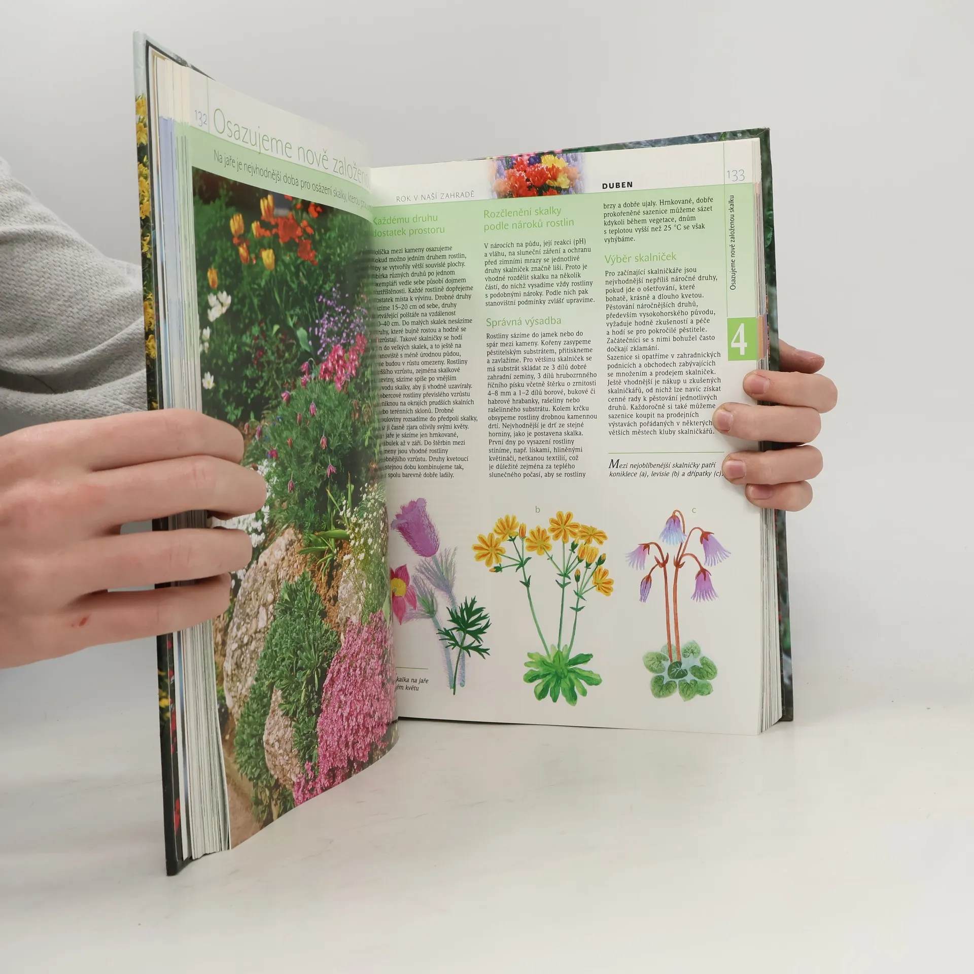 Kniha nabízí čtenáři procházku zahradou během celého roku. V jednotlivých měsících uvádí přehled nejdůležitějších prací, na něž by neměl zapomenout, ukazuje mu krásy, které v zahradě vytvářejí okrasné rostliny a poskytuje rady, jak úspěšně zvládnout složitější úkoly při zakládání, ošetřování a zdokonalování zahrady. Kniha je vybavena množstvím zdařilých instruktivních a ilustračních obrázků a fotografií, jež vhodně doplňují textovou část.