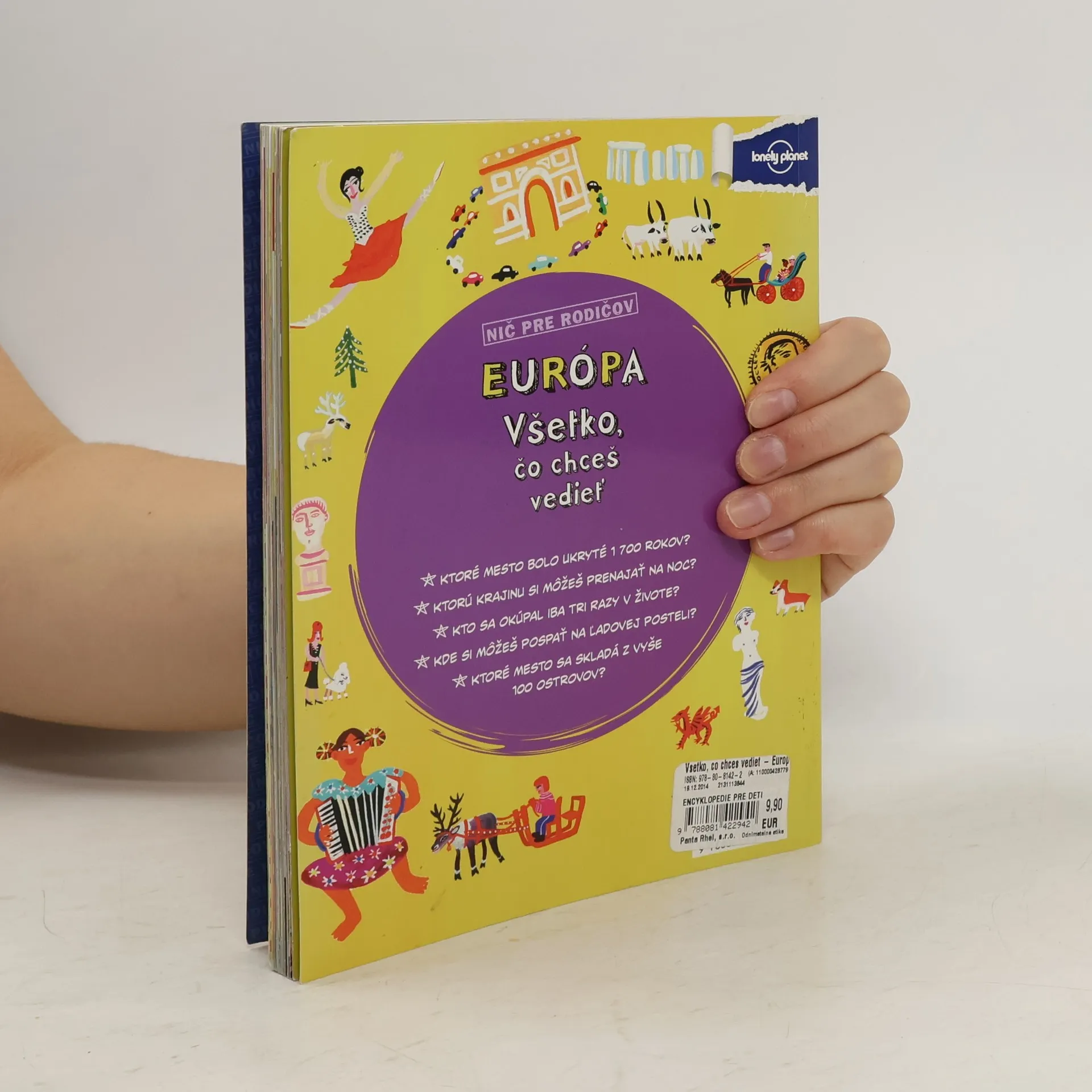 Jednou z novej série pôvabných a vtipných knižiek Všetko, čo chceš vedieť je kniha Európa, ktorá ti predstaví starý kontinent tak, ako ho tvoji rodičia pravdepodobne nepoznajú. Nájdeš v nej mozaiku histórie, zaujímavostí, úžasných príbehov a fascinujúcich faktov o ľuďoch, miestach, dejinách a kultúre tohto svetadiela. - Ktorú krajinu si môžeš prenajať na noc? - Kto sa okúpal iba tri razy v živote? - Kde si môžeš pospať na ľadovej posteli? - Ktoré mesto sa skladá z vyše 100 ostrovov? - Ktoré mesto bolo ukryté 1200 rokov?