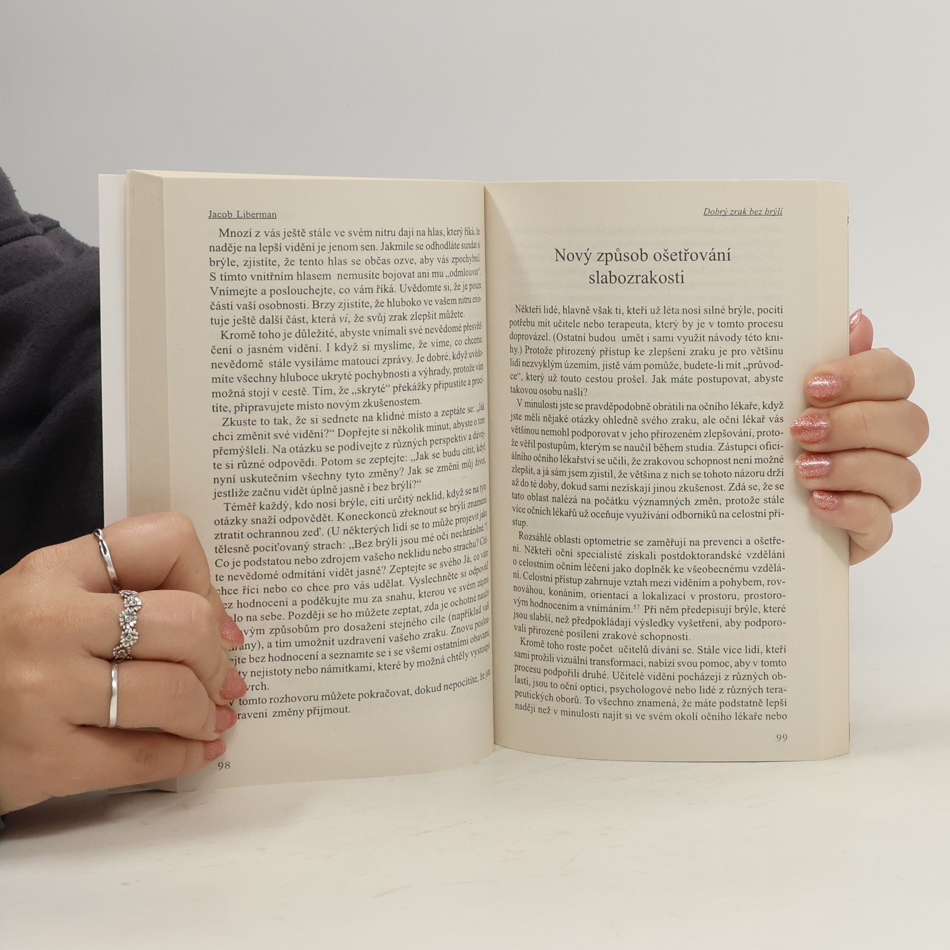 Tato kniha se věnuje poruchám a nápravě naší schopnosti vidět úplně odlišným způsobem, než na jaký jsme zvyklí. Zve nás k tomu, abychom začali vidět nejen lépe, ale také jinak. Proto má tato kniha co říci nejen těm, kdo nosí brýle a touží se jich zbavit, ale i těm, kteří podle běžných kritérií vidí dobře. Najdete zde množství pozoruhodných svědectví zázračného zlepšení zraku, a to i při velmi silných dioptriích.
