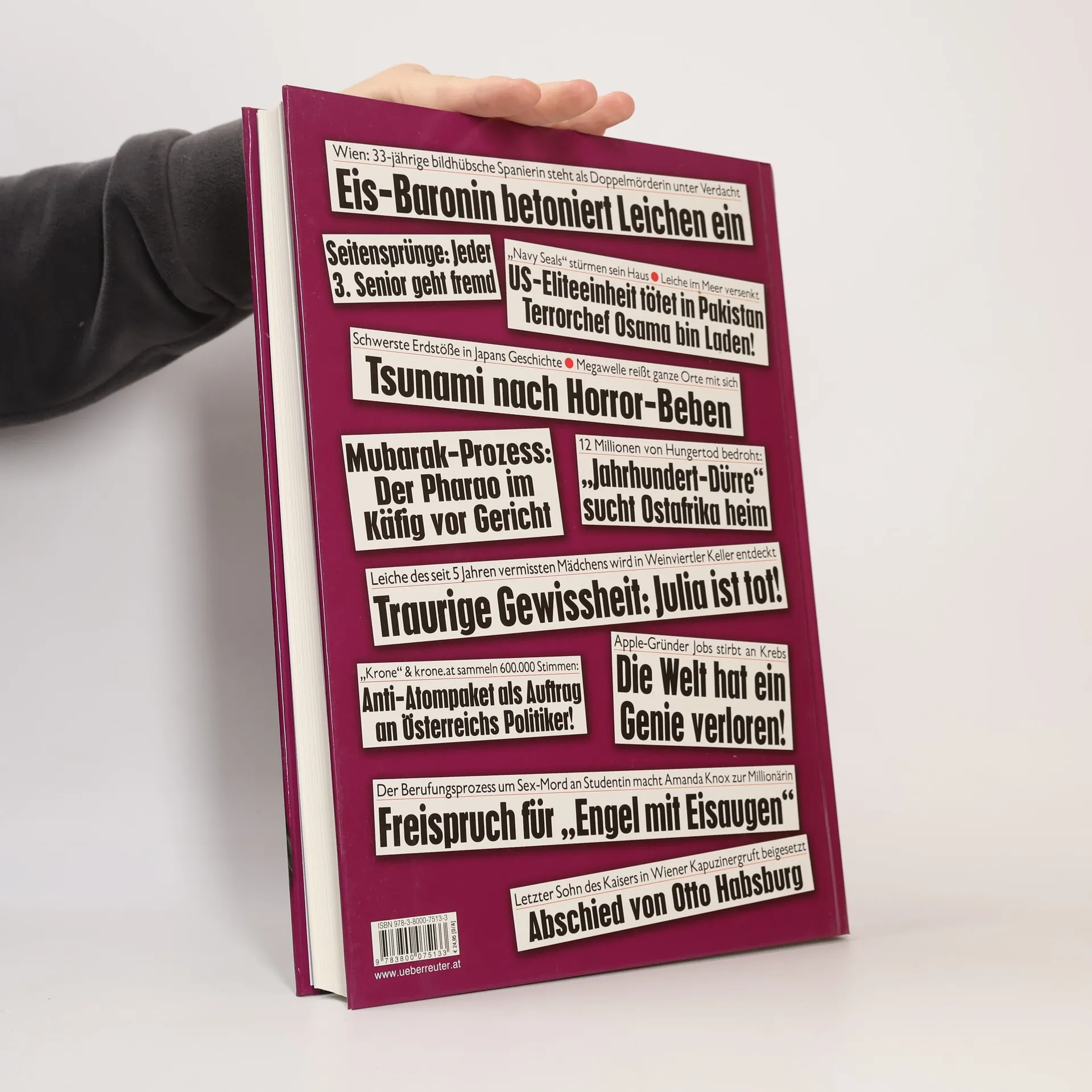 Die Machtkämpfe und die daraus resultierenden Unruhen im arabischen Raum haben zum militärischen Eingreifen des Westens bewegt. Das Erdbeben in Japan und seine noch nicht absehbaren Folgen beunruhigen die ganze Welt. Skandale und Affären erschüttern Österreich und seine Nachbarländer. Natürlich bringt das neue> KroneAdabei<- Geschichten – vom Opernball bis zu den Highlights der internationalen Society. Alles in allem 150 spannende Seiten Zeitgeschichte mit den besten Fotos des Jahres.