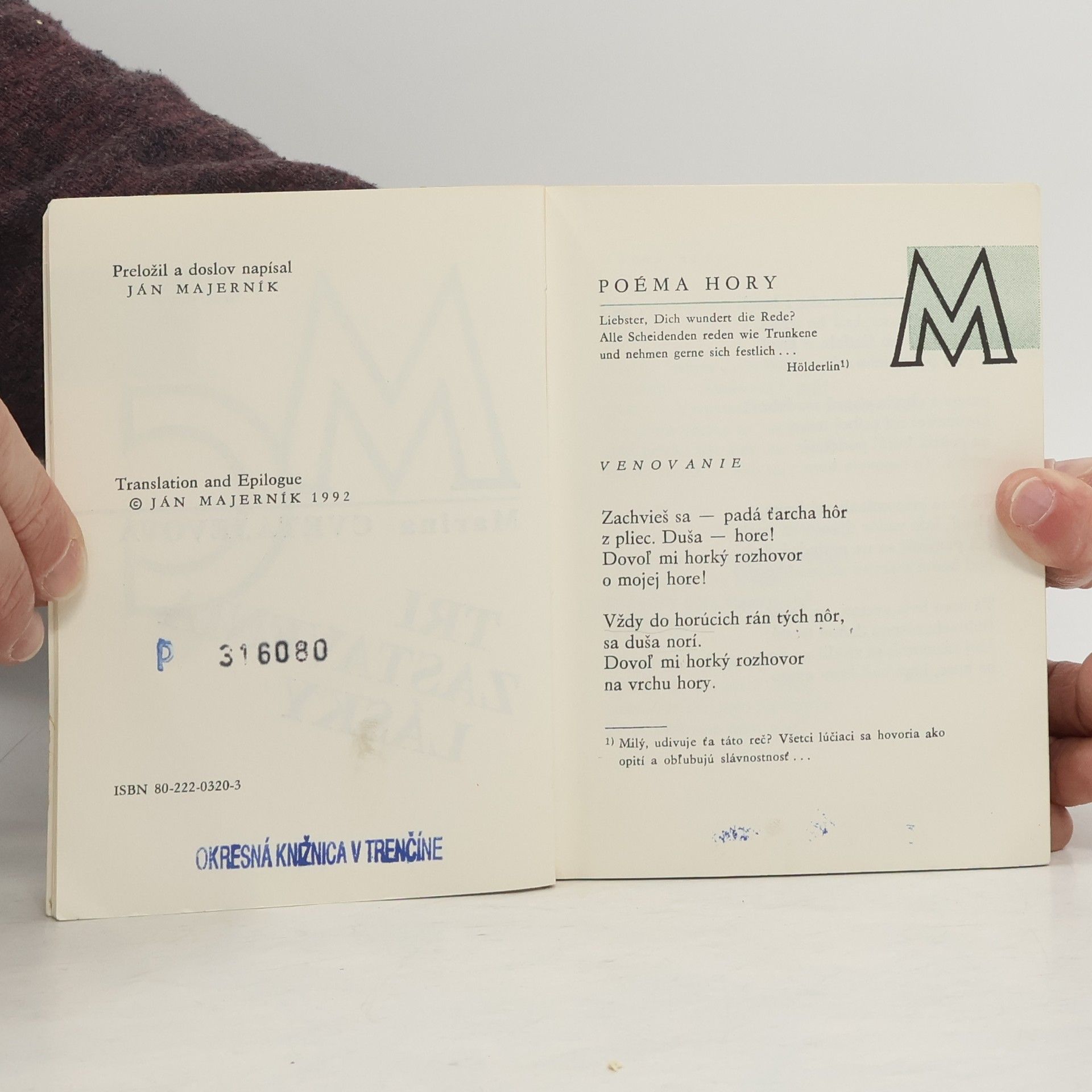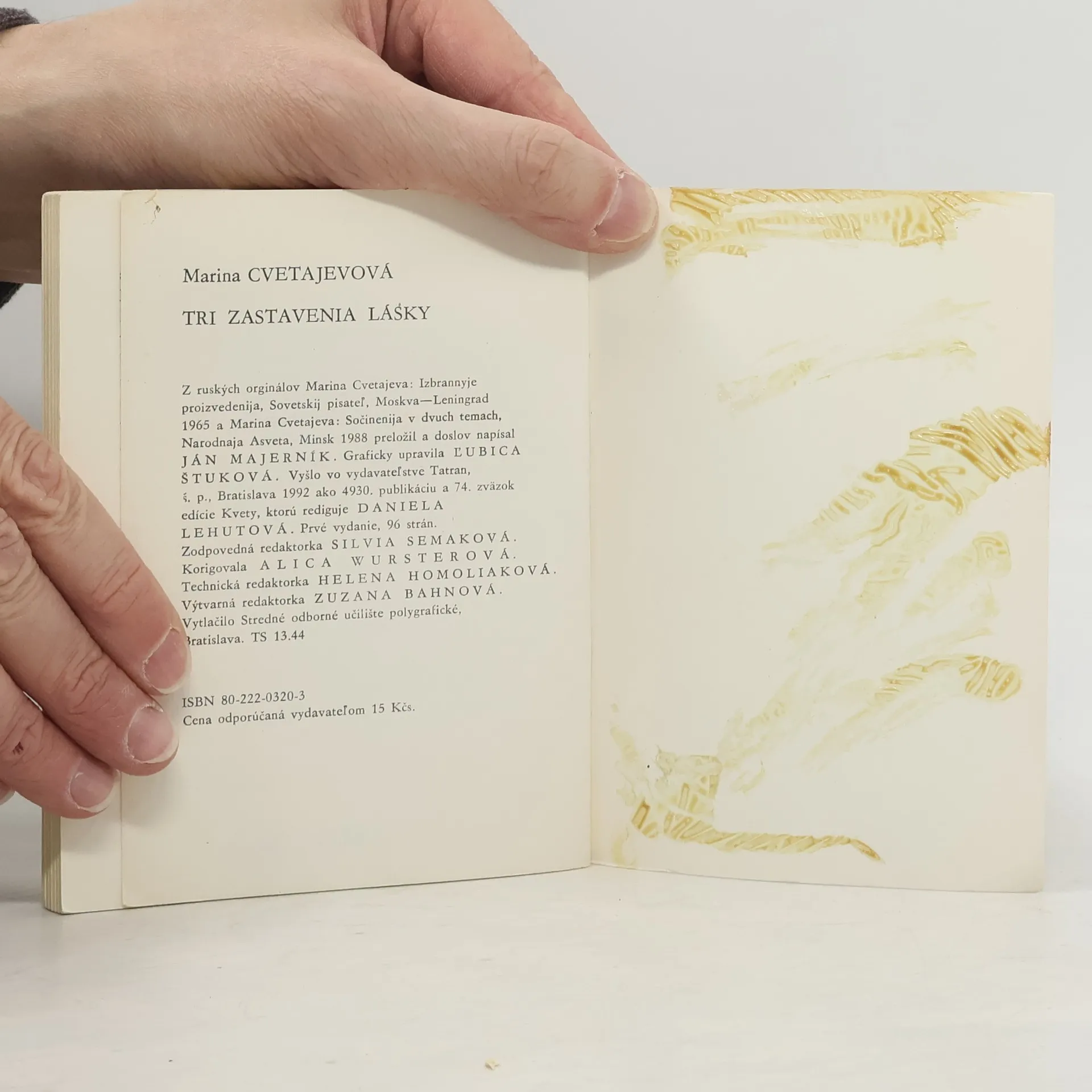 Výber z diela ruskej poetky - Poéma hory, Poéma konca, Poéma zadných schodov. Doslov s názvom Pani i slúžka poézie napísal Ján Majerník. Prvé vydanie.