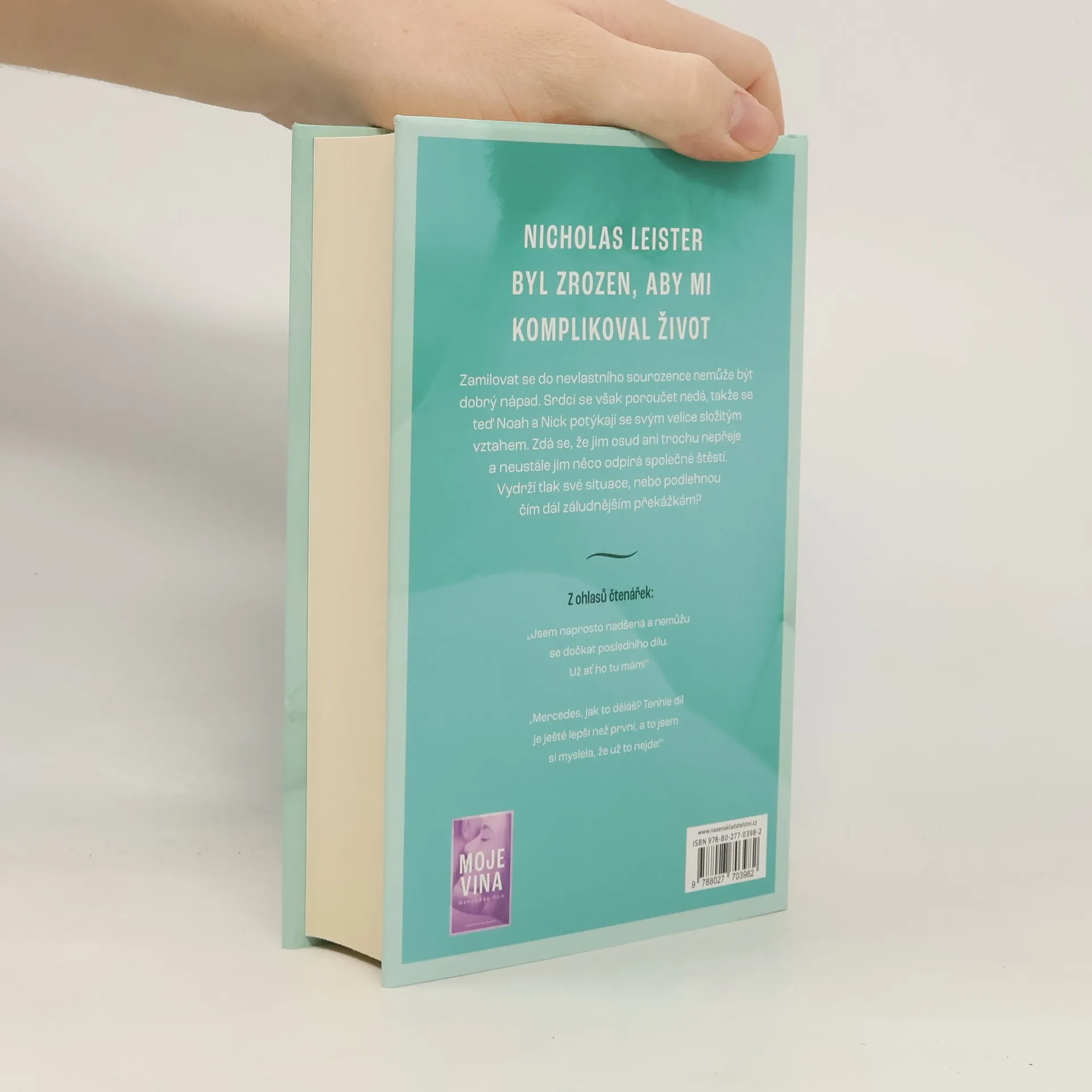 Kniha Tvoje vina, druhý díl romantické trilogie Viníci od Mercedes Ron o drsňákovi s velkým srdcem a hodné dívce s velkou odvahou, obsahuje ještě víc romantiky, zrady a záhad.Když se Noah zamilovala do Nicka, věděla, že jejich vztah nebude snadný: jsou protikladní jako oheň a voda a když jsou spolu, létají nebezpečné jiskry... naprosto ve všech směrech.Dosud byla jejich vášeň ještě silnější než jejich hrdost, ale věkový rozdíl, vysoká škola, večírky, rodiče a stíny z minulosti, které oba pronásledují, je znovu a znovu zkoušejí jako časovaná bomba, která hrozí výbuchem.Je Noah opravdu připravena čelit svému strachu a znovu někomu důvěřovat?Dokáže se Nicholas oprostit od své minulosti a otevřít své srdce jedné jediné osobě?