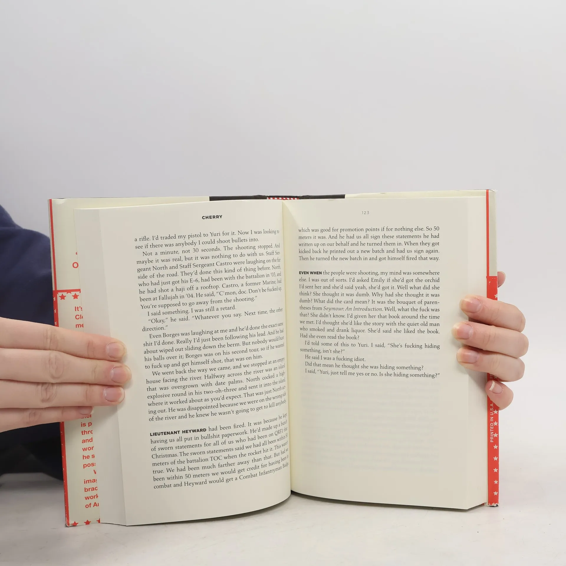 "Jesus' Son meets Reservoir Dogs in a breakneck-paced debut novel about love, war, bank robberies, and heroin. Cleveland, 2003. A young man is just a college freshman when he meets Emily. They share a passion for Edward Albee and ecstasy and fall hard and fast in love. But soon Emily has to move home to Elba, New York, and he flunks out of school and joins the army. Desperate to keep their relationship alive, they marry before he ships out to Iraq. But as an army medic, he is unprepared for the grisly reality that awaits him. His fellow soldiers smoke; they huff computer duster; they take painkillers; they watch porn. And many of them die. He and Emily try to make their long-distance marriage work, but when he returns from Iraq, his PTSD is profound, and the drugs on the street have changed. The opioid crisis is beginning to swallow up the Midwest. Soon he is hooked on heroin, and so is Emily. They attempt a normal life, but with their money drying up, he turns to the one thing he thinks he could be really good at--robbing banks. Hammered out on a typewriter, Cherry marks the arrival of a raw, bleakly hilarious, and surprisingly poignant voice straight from the dark heart of America"