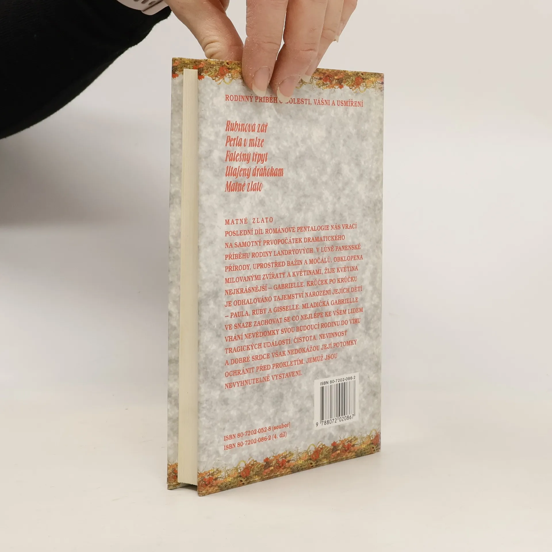 Pentalogie: Rubínová zář, Perla v mlze, Falešný třpyt, Utajený drahokam, Matné zlato. Další románová pentalogie, v níž komplikované rodinné vztahy přinášejí nečekané i tragické zvraty událostí. Pearl-dítě, o něž musela vlastní matka bojovat v absurdním soudním sporu-prožila s milujícími rodiči a bratry nádherné dětství a dospěla v okouzlující mladou dámu. Jako premiantka třídy skončila střední školu a už má jasnou představu o své budoucnosti. Touží stát se dobrou a úspěšnou lékařkou. Opojný pocit ze společného štěstí, lásky a sounáležitosti naruší stín ponuré minulosti a rána osudu je nemilosrdná. Tragická nehoda, při níž umírá jeden z bratrů, poznamená životní osudy ostatních členů rodiny a jejich duše zahalí bolest a žal. Pod tíhou kruté reality a s pocitem vlastní viny prchá Pearlina matka do zátoky, ke svým cajunským předkům, kde hledá pomoc a rozhřešení. Otec se uzavírá do vlastního, alkoholem nasáklého světa a tak jedině Pearl se stává tou vyvolenou, která je schopná a ochotná bojovat s fatální sudbou. V touze zachránit druhého bratra odjíždí do zátoky, aby vyhledala matku a přivedla ji k bratrově posteli. Přes počáteční marné a mnohokrát neúspěšné pátrání je Pearl po zásluze odměněna-konečně i ona poznává kouzlo romantické vášně a nachází útočiště v náručí cajunského muže.