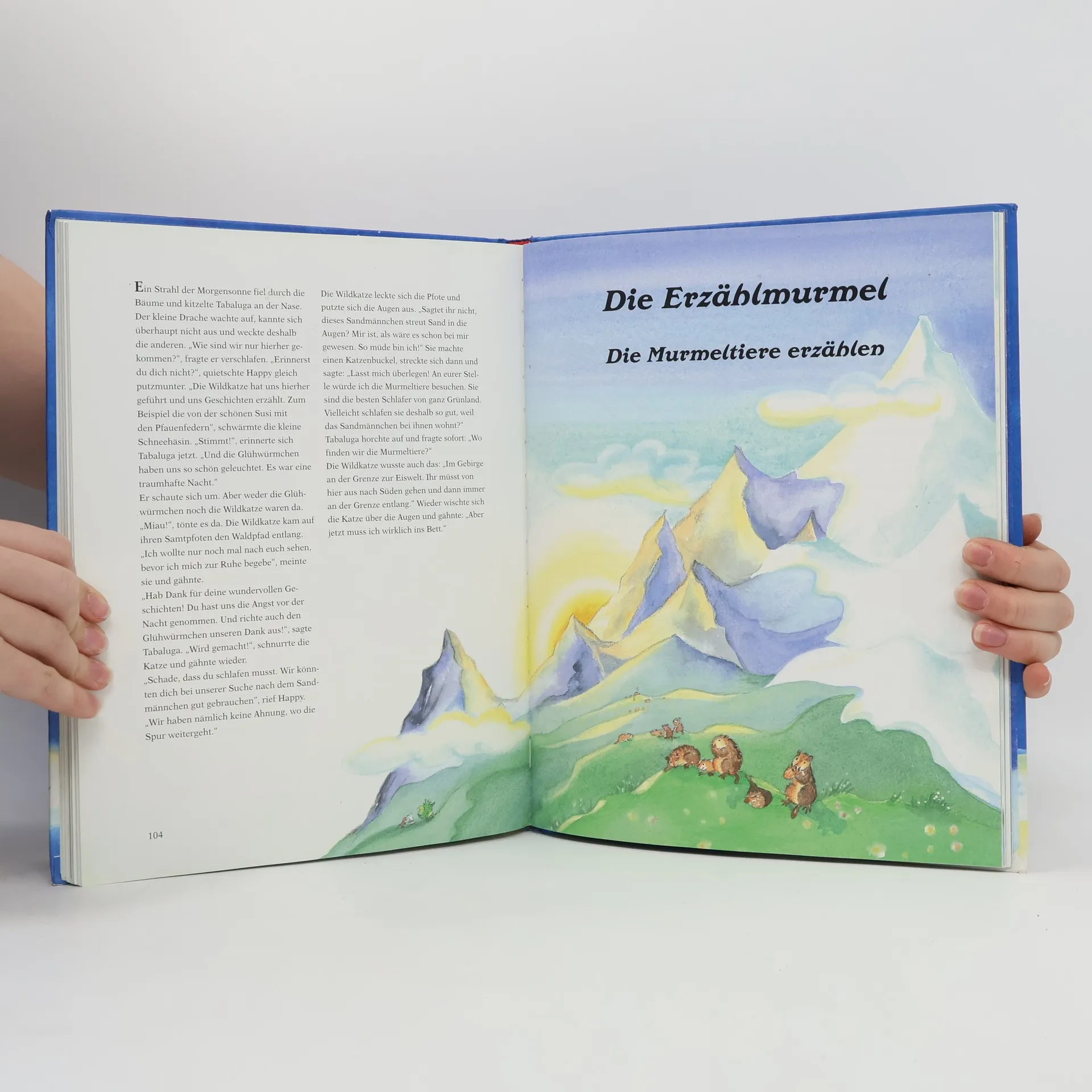Tabaluga und seine Freunde sind auf der Suche nach dem Sandmännchen. Auf dem Weg treffen sie viele Tiere: Eulen und Fledermäuse, Schafe und Füchse, Wildkatzen und Murmeltiere und zum Schluss noch Nachtigallen. Alle erzählen ihre schönsten Gute-Nacht-Geschichten, aber ob sie am Ende auch das Sandmännchen finden. ?