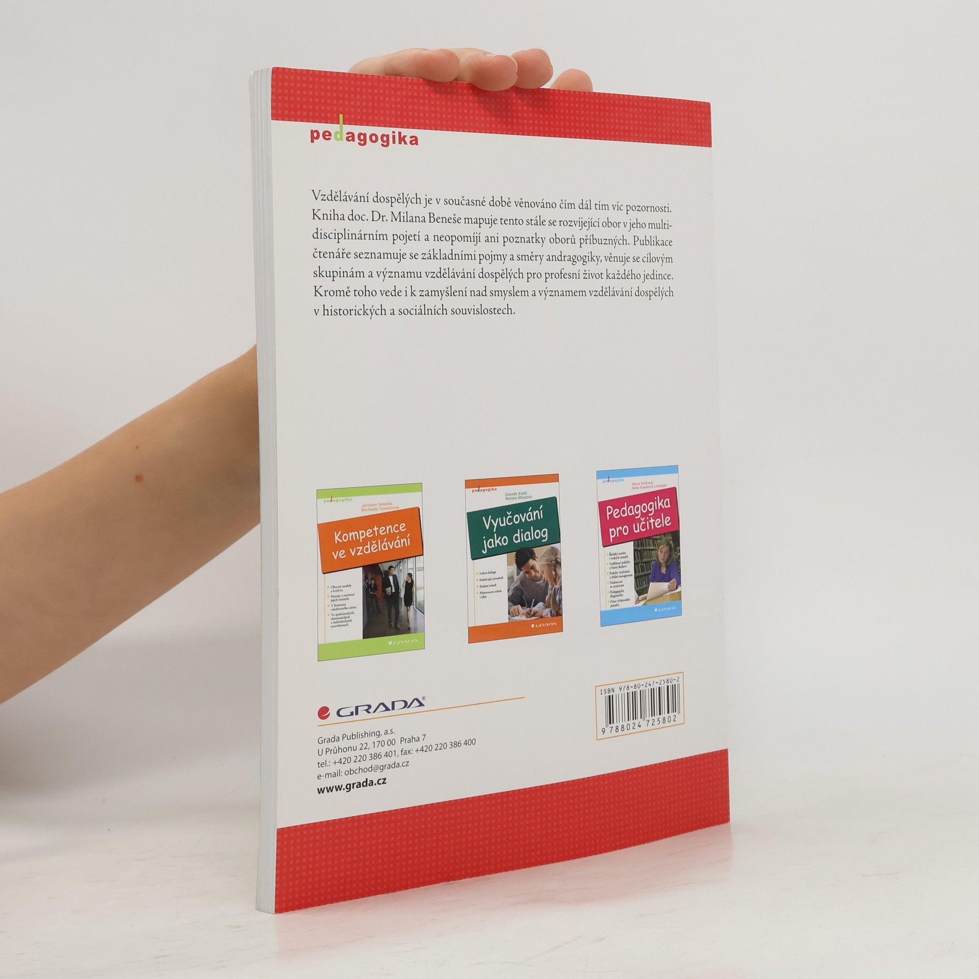 Vzdělávání dospělých je v současné době věnováno čím dál tím víc pozornosti. Kniha doc. Dr. Milana Beneše mapuje tento stále se rozvíjející obor v jeho multidisciplinárním pojetí a neopomíjí ani poznatky oborů příbuzných. Publikace čtenáře seznamuje se základními pojmy a směry andragogiky, věnuje se cílovým skupinám a významu vzdělávání dospělých pro profesní život každého jedince. Kromě toho vede i k zamyšlení nad smyslem a významem vzdělávání dospělých v historických a sociálních souvislostech. (anotace převzata z přebalu knihy)