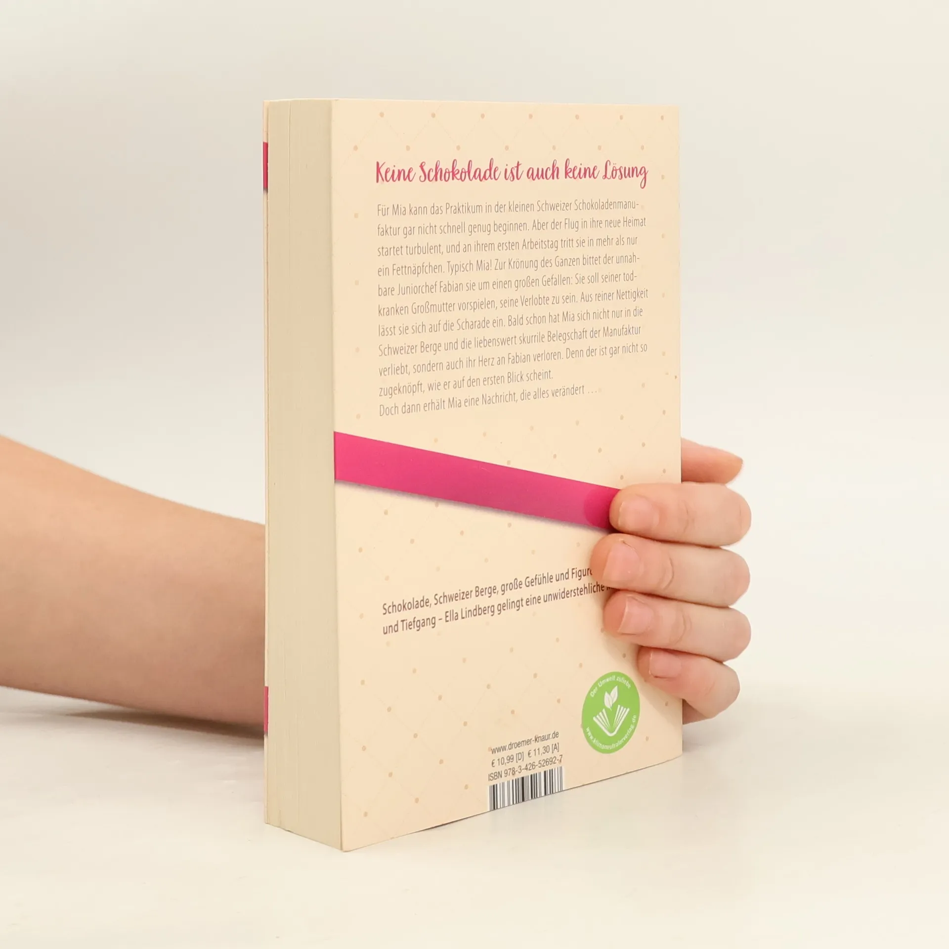 Der humorvolle Feelgood-Roman von Ella Lindberg ist wie Schokolade: hat man erst mal angefangen, kann man nicht mehr aufhören. Mit Atmosphäre, Witz und einer wunderbaren Liebesgeschichte überzeugt die Autorin. Mias Praktikum in einer Schweizer Schokoladen-Manufaktur könnte traumhaft sein – die Berge genießen, nette Kollegen und Schokolade, so viel sie will. Doch die Realität sieht anders aus: Die Manufaktur hat finanzielle Probleme, und niemand kümmert sich um Mia. Zudem soll sie der im Sterben liegenden Großmutter des Juniorchefs vorspielen, sie sei dessen Verlobte Isabella. Widerwillig lässt sich Mia auf diese falsche Liebesgeschichte ein und merkt bald, dass sie sich nicht nur in die Berge und die skurrile Belegschaft verliebt hat, sondern auch in ihren Chef Fabian. Plötzlich taucht die echte Isabella auf und bringt das Liebes-Chaos ins Rollen. Doch wer sagt, dass Schokolade keine Probleme lösen kann? Ella Lindberg vereint in ihrem Roman die Atmosphäre der Schweizer Berge mit wunderbaren Figuren und einer spritzigen Liebesgeschichte. Eine unwiderstehliche Mischung für unterhaltsame Lesestunden – mit oder ohne Schokolade.