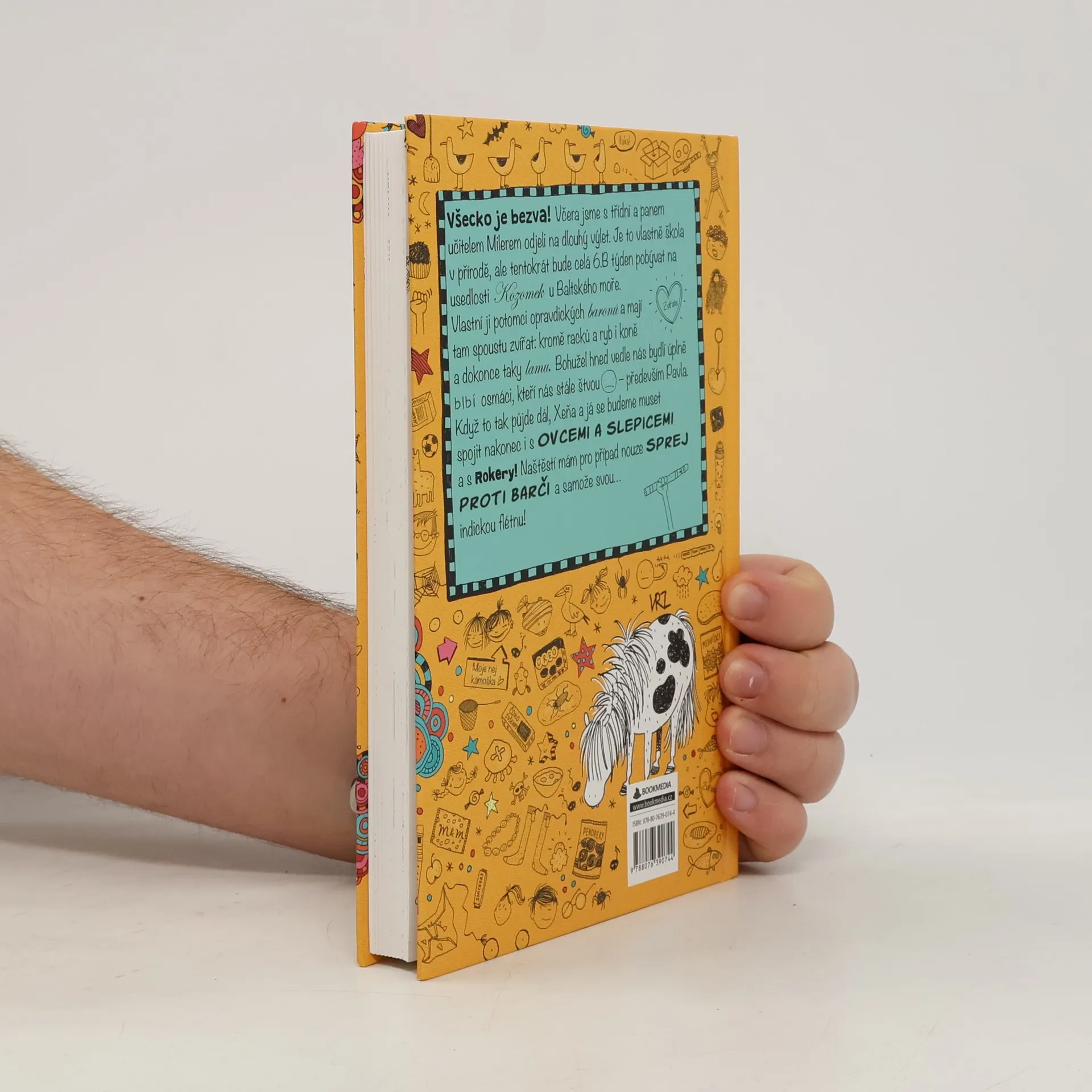 Všecko je bezva! Včera jsme s třídní a panem učitelem Milerem odjeli na dlouhý výlet. Je to vlastně škola v přírodě, ale tentokrát bude celá 6.B týden pobývat na usedlosti Kozomek u Baltského moře. Vlastní ji potomci opravdických baronů a mají tam spoustu zvířat: kromě racků a ryb i koně, a dokonce taky lamu. Bohužel hned vedle nás bydlí úplně blbí osmáci, kteří nás stále štvou - především Pavla. Když to tak půjde dál, Xeňa a já se budeme muset spojit nakonec i s Ovcemi a slepicemi a s Rokery! Naštěstí mám pro případ nouze sprej proti Barči a samože svou… indickou flétnu!