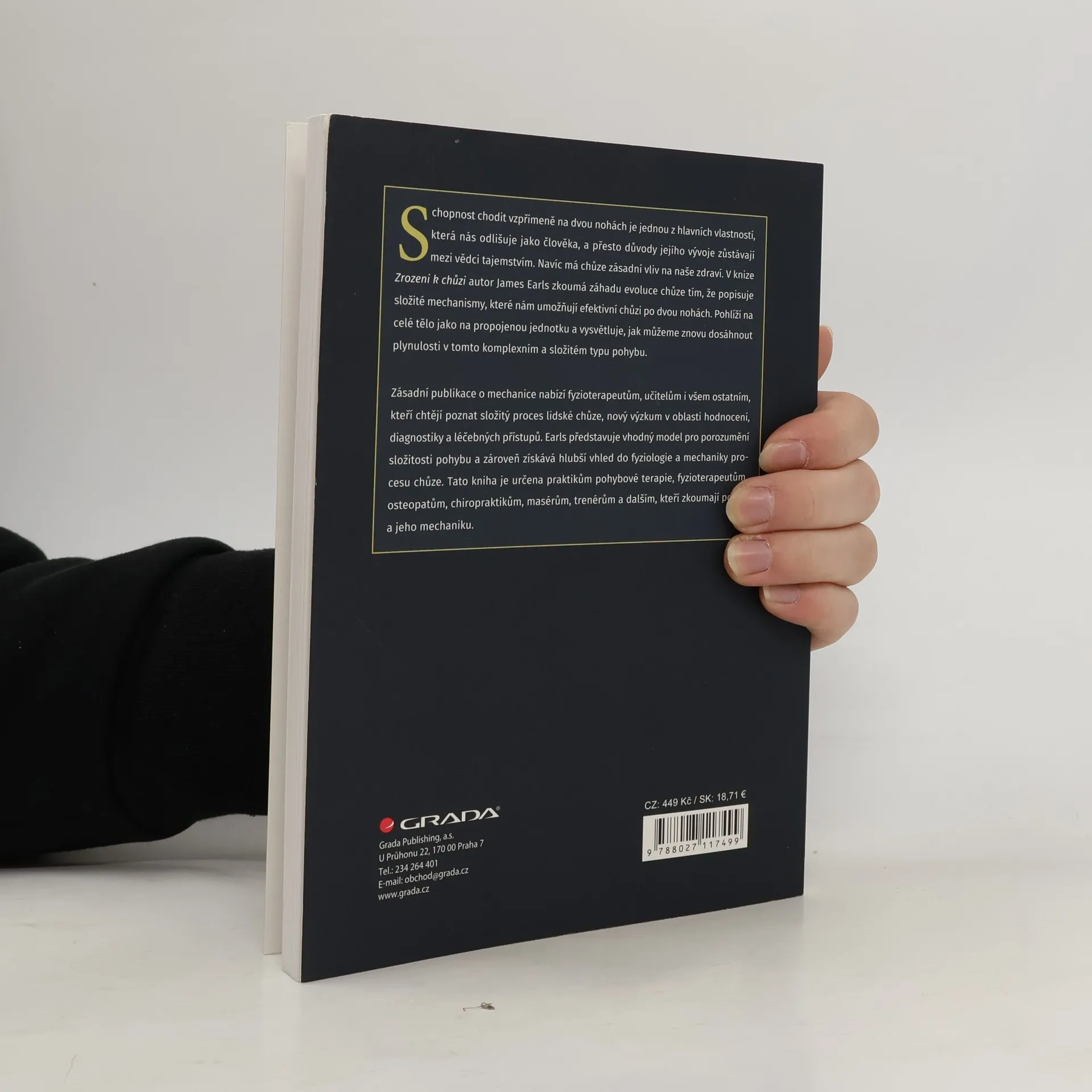 Schopnost chodit vzpřímeně na dvou nohách je jednou z hlavních vlastností, která nás odlišuje jako člověka, a přesto důvody jejího vývoje zůstávají mezi vědci tajemstvím. Navíc má chůze zásadní vliv na naše zdraví. V knize Zrozeni k chůzi autor James Earls zkoumá záhadu evoluce chůze tím, že popisuje složité mechanismy, které nám umožňují efektivní chůzi po dvou nohách. Pohlíží na celé tělo jako na propojenou jednotku a vysvětluje, jak můžeme znovu dosáhnout plynulosti v tomto komplexním a složitém typu pohybu. Zásadní publikace o mechanice nabízí fyzioterapeutům, učitelům i všem ostatním, kteří chtějí poznat složitý proces lidské chůze, nový výzkum v oblasti hodnocení, diagnostiky a léčebných přístupů. Earls představuje vhodný model pro porozumění složitosti pohybu a zároveň získává hlubší vhled do fyziologie a mechaniky procesu chůze. Tato kniha je určena praktikům pohybové terapie, fyzioterapeutům, osteopatům, chiropraktikům, masérům, trenérům a dalším, kteří zkoumají pohyb a jeho mechaniku.