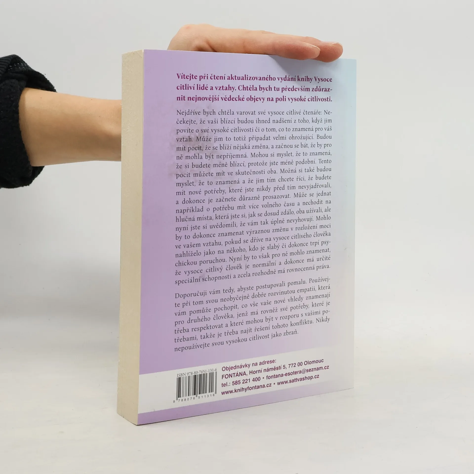 Autorka v této knize nabízí praktické rady všem vysoce citlivým lidem, kteří hledají spokojenější a zdravější milostný vztah. Najdete zde několik sebeposuzujících dotazníků na zjištění typu svého temperamentu a praktické rady, jak se naučit lépe zvládat vlastní temperament i temperament svého partnera. Dozvíte se, jak se vyrovnat s předsudky vůči vysoce citlivým mužům a ženám a lépe poznat svůj styl vztahové vazby. Tato kniha vám pomůže odhalit příčiny svého strachu z intimity a ukáže vám, jak tento strach překonat, díky čemuž si budete moci vytvořit šťastnější partnerský vztah.
