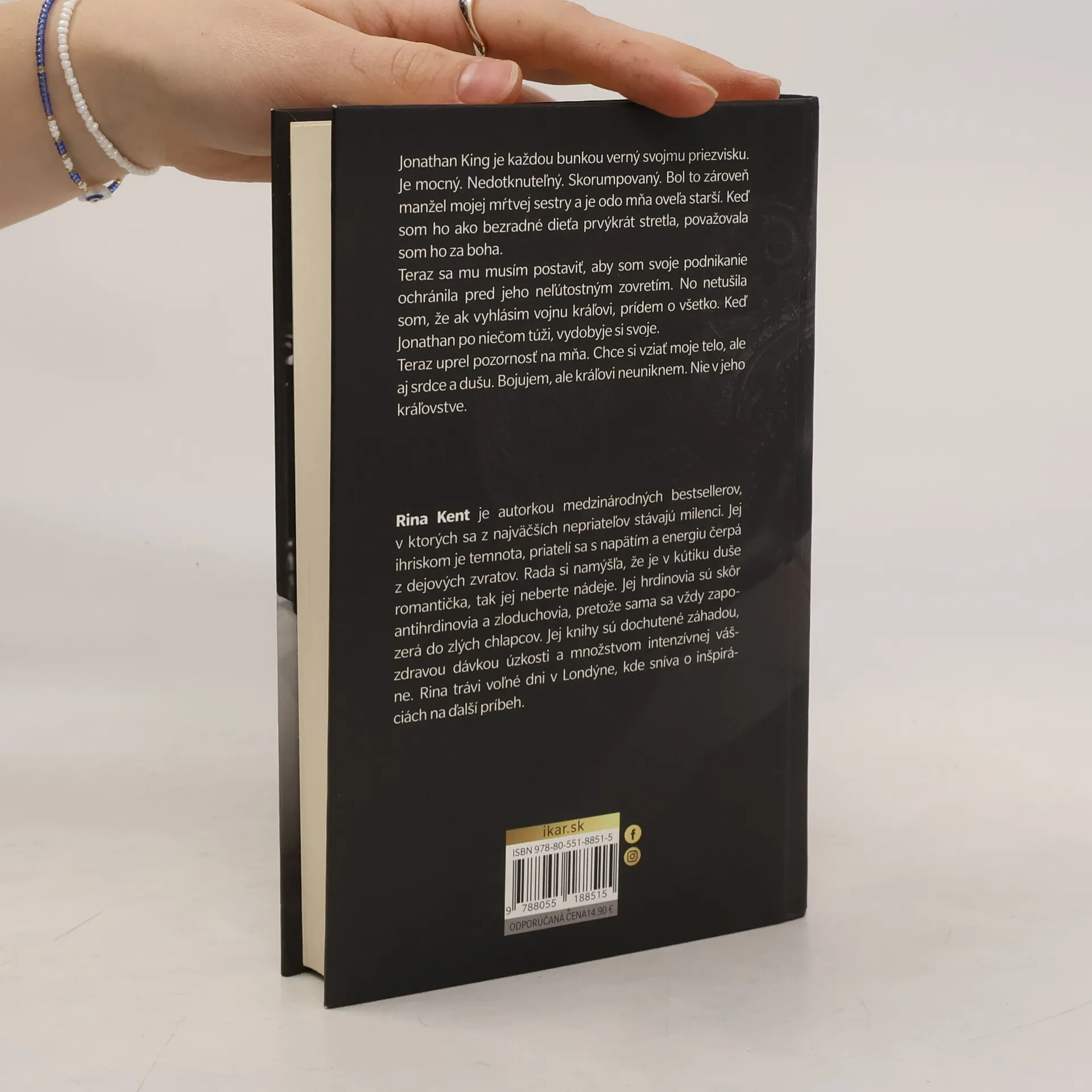 Je mocný, je nedotknuteľný. A vždy si vydobyje svoje.Jonathan King je každou bunkou verný svojmu priezvisku. Je mocný. Nedotknuteľný. Skorumpovaný. Bol to zároveň manžel mojej mŕtvej sestry a je odo mňa oveľa starší. Keď som ho ako bezradné dieťa prvýkrát stretla, považovala som ho za boha.Teraz sa mu musím postaviť, aby som svoje podnikanie ochránila pred jeho neľútostným zovretím. No netušila som, že vyhlásiť vojnu kráľovi ma bude stáť všetko. Keď Jonathan po niečom túži, vydobyje si svoje.Teraz uprel pozornosť na mňa. Chce si vziať moje telo, ale aj srdce a dušu. Bojujem, ale kráľovi sa nedá uniknúť. Nie v jeho kráľovstve.