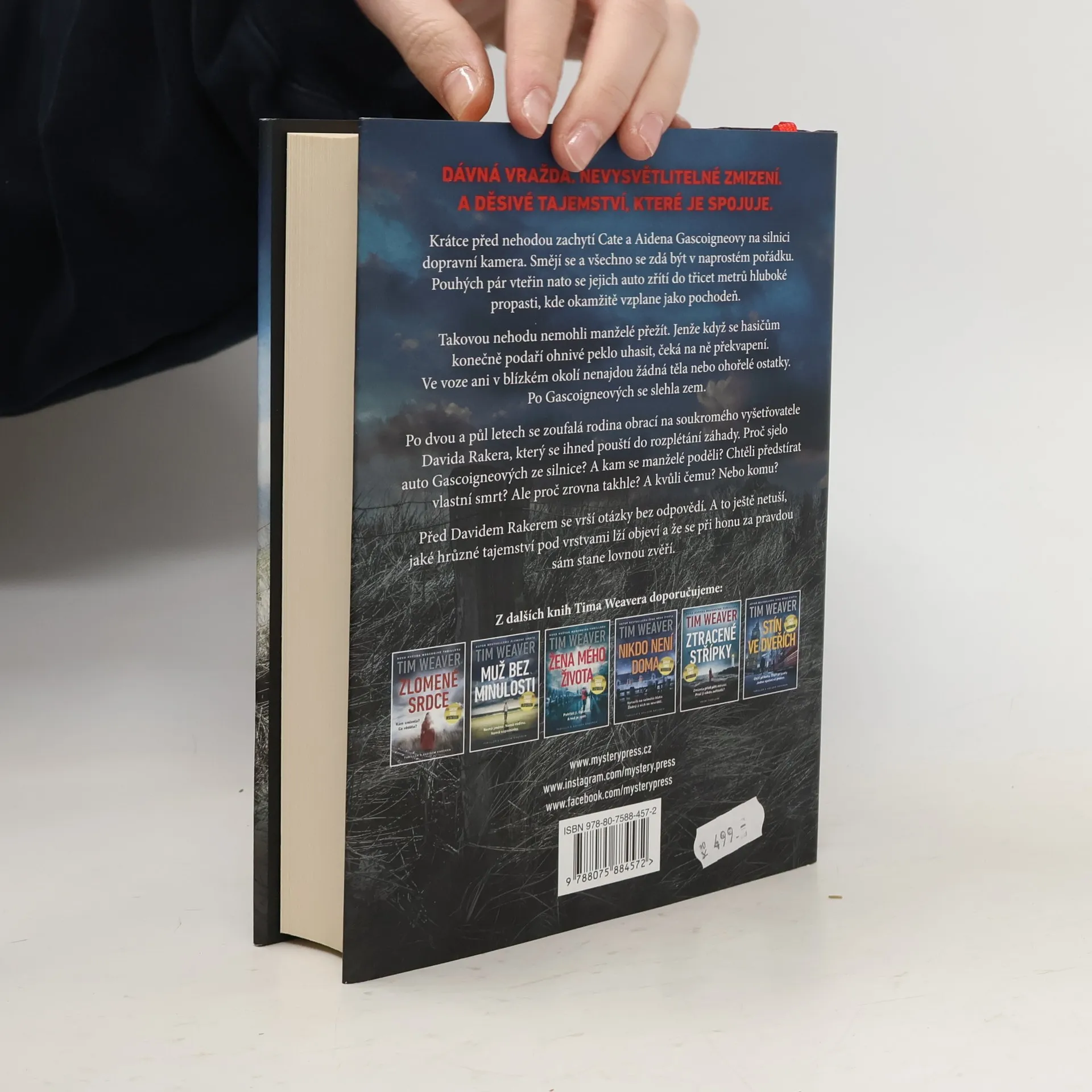 DÁVNÁ VRAŽDA. NEVYSVĚTLITELNÉ ZMIZENÍ. A DĚSIVÉ TAJEMSTVÍ, KTERÉ JE SPOJUJE.Krátce před nehodou zachytí Cate a Aidena Gascoigneovy na silnici dopravní kamera. Smějí se a všechno se zdá být v naprostém pořádku. Pouhých pár vteřin nato se jejich auto zřítí do třicet metrů hluboké propasti, kde okamžitě vzplane jako pochodeň.Takovou nehodu nemohli manželé přežít. Jenže když se hasičům konečně podaří ohnivé peklo uhasit, čeká na ně překvapení. Ve voze ani v blízkém okolí nenajdou žádná těla nebo ohořelé ostatky. Po Gascoigneových se slehla zem.Po dvou a půl letech se zoufalá rodina obrací na soukromého vyšetřovatele Davida Rakera, který se ihned pouští do rozplétání záhady. Proč sjelo auto Gascoigneových ze silnice? A kam se manželé poděli? Chtěli předstírat vlastní smrt? Ale proč zrovna takhle? A kvůli čemu? Nebo komu?Před Davidem Rakerem se vrší otázky bez odpovědí. A to ještě netuší, jaké hrůzné tajemství pod vrstvami lží objeví a že se při honu za pravdou sám stane lovnou zvěří.