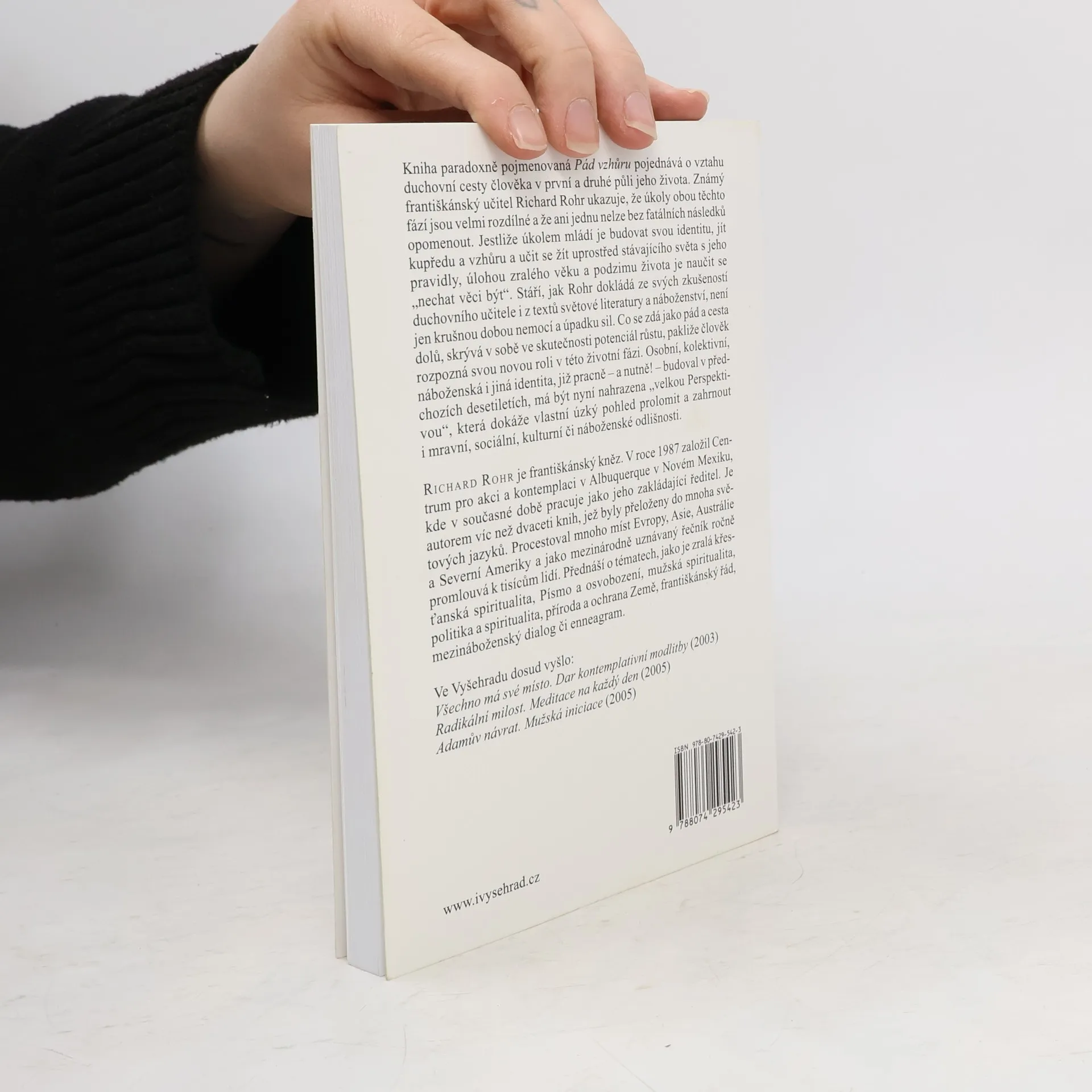 Spiritualita pro obě poloviny života / Průvodce na cestě k tajemství a kráse skutečné duchovní dospělosti. První polovina lidského života je dobou budování identity, dosahování výsledků, výkonu. S postupujícím věkem se však před člověkem otevírá nová cesta – cesta, jež zahrnuje omyly, ztráty, bezmoc, utrpení, všechno to, co nás vytrhuje z našeho dřívějšího pohodlí. Tato nová fáze vyžaduje změnu pohledu na sebe sama, v němž se odvážíme dát větší průchod samotnému životu. Tento „pád“ – který ale ve skutečnosti míří vzhůru – je odkazem světových náboženství, jemuž se lidé nejvíce vzpírají a který je v rozporu s běžným míněním. Což platí také – a zejména – pro náboženství křesťanské. Františkánský duchovní exercitátor a zakladatel Centra pro akci a kontemplaci ve své knize umožňuje pochopit zdánlivý paradox, jak se naše prohry a neúspěchy mohou stát podkladem pro další duchovní růst. Opírá se přitom o starobylé mýty, hrdinské příběhy, velké myslitele a posvátné náboženské texty, které ukazují, že jedině ten, kdo padl, „dotkl se dna“, je schopen porozumět tomu, co znamená stoupat „vzhůru“.