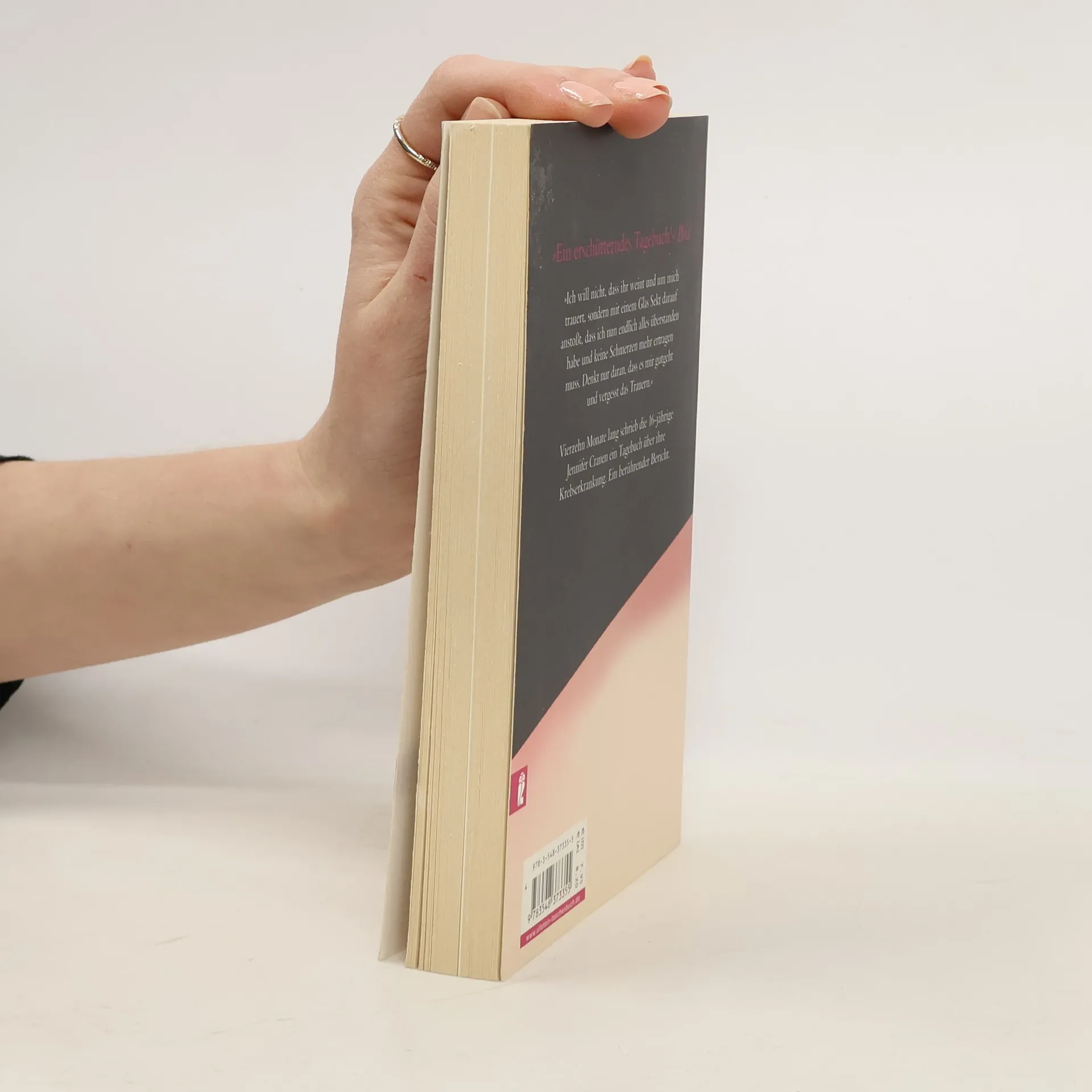 »Ich will nicht, dass ihr weint und um mich trauert, sondern mit einem Glas Sekt darauf anstoßt, dass ich nun endlich alles überstanden habe. Denkt nur daran, dass es mir gutgeht, und vergesst das Trauern.« Jenni Cranen ist fünfzehn, als sie erfährt, dass sie Krebs hat. Nach dem ersten Schock nimmt sie den Kampf gegen die Krankheit auf. Vierzehn Monate lang steht sie tapfer die Therapie und quälende Schmerzen durch. Doch Jenni verliert den Kampf gegen den Krebs und stirbt mit nur 16 Jahren. Während dieser Zeit hat sie Tagebuch geschrieben. Darin erzählt sie von ihren Erlebnissen, ihrer Angst, aber auch von ihrer Hoffnung und ihrer unbändigen Liebe zum Leben. Ein berührender Bericht.