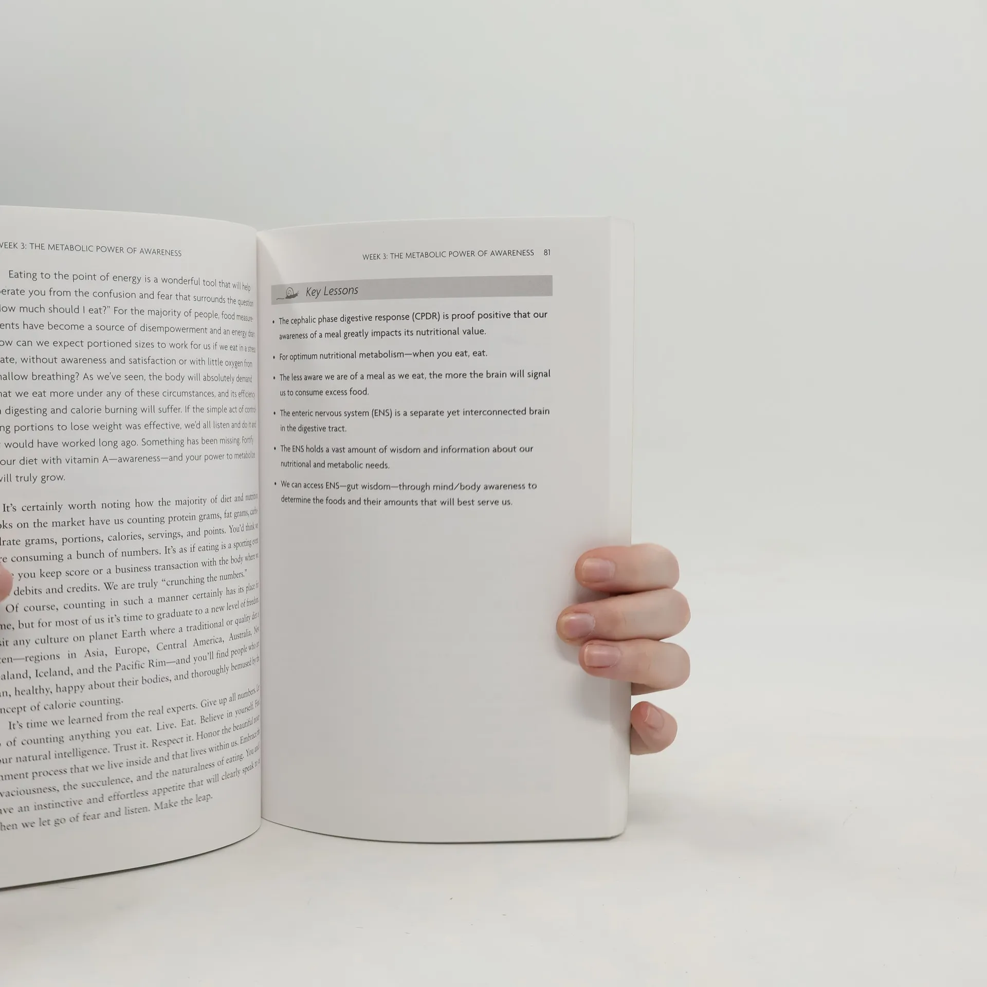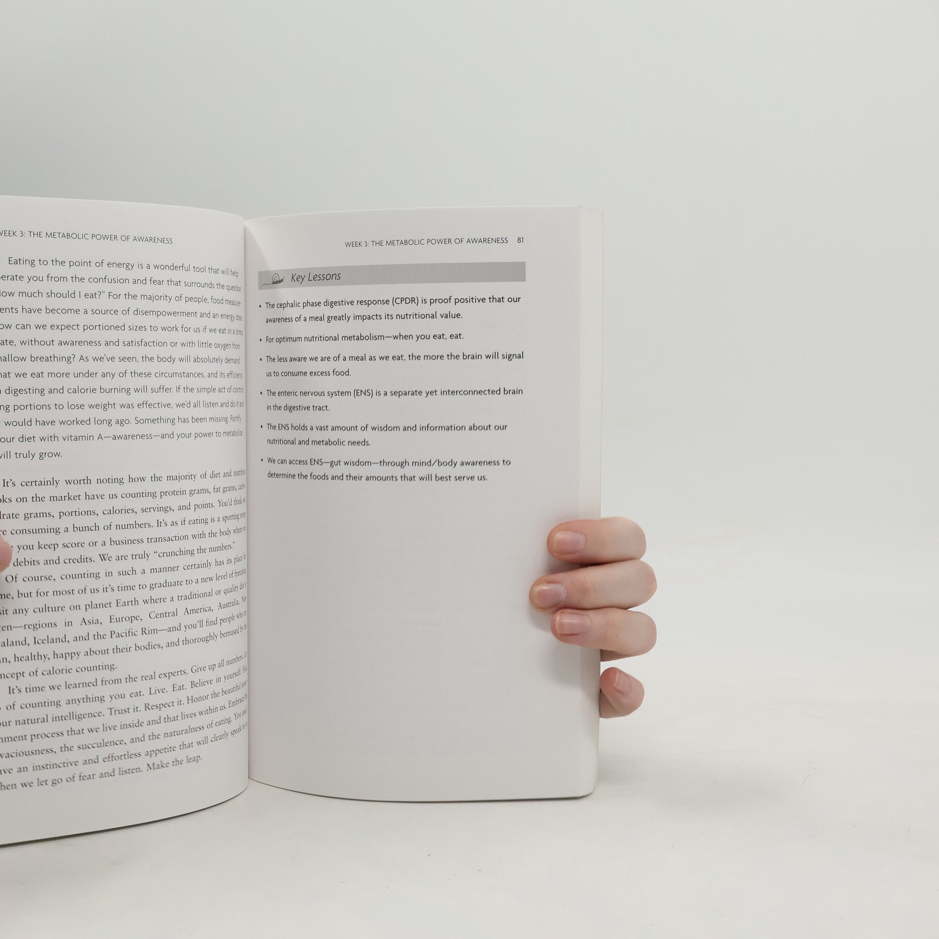 Presents a guide to understanding the relationship between eating and improving metabolism, and offers suggestions for connecting the body, and mind, spirit through mindful eating that sheds pounds, increases energy, and enhances.