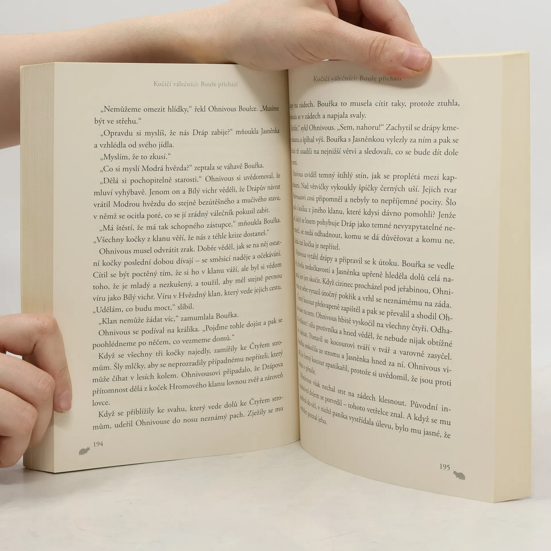 Další pokračování fantasy příběhu, kde hlavními hrdiny jsou divoké kočky, které spolu vedou neustálé spory a války.Ohnivousův největší nepřítel Dráp byl vyhnán z Bouřkového klanu, ale Ohnivous se nemůže zbavit pocitu, že se ukryl nedaleko a v nestřeženém okamžiku zaútočí. V lese panuje dusná atmosféra a kočky cítí, že bouře již přichází.