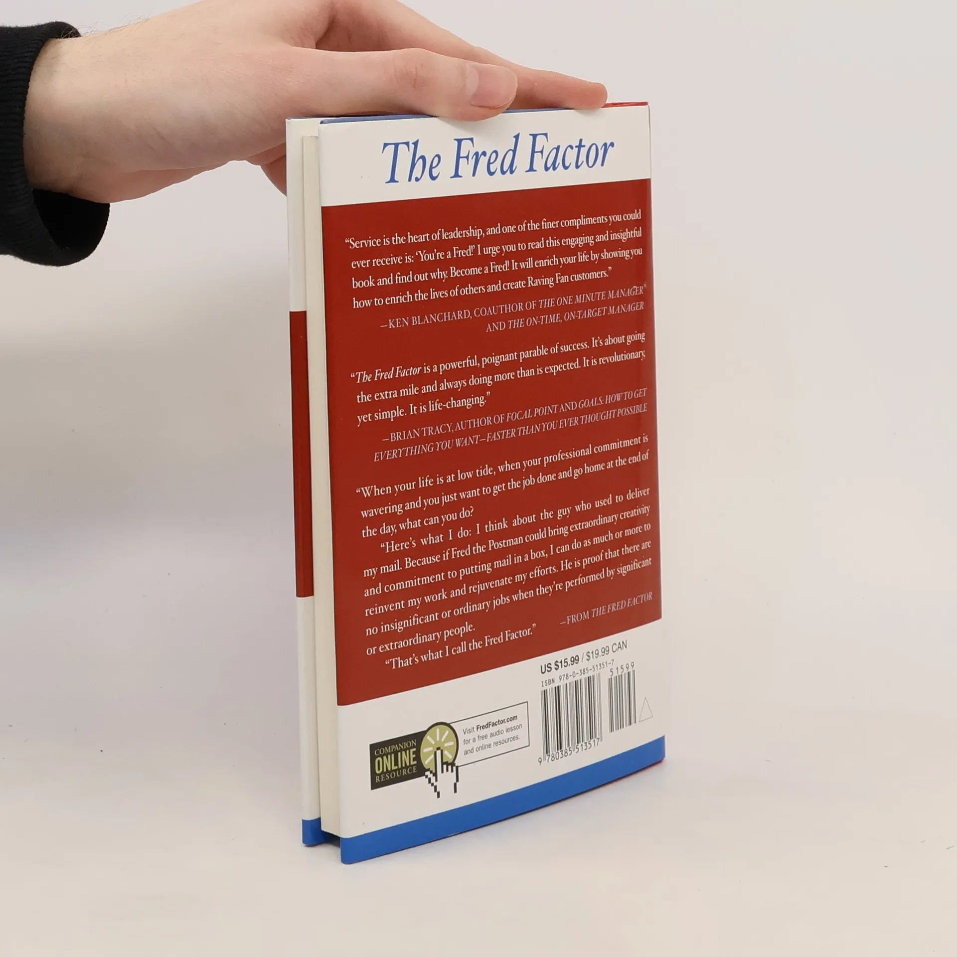 Meet Fred.In his powerful new book The Fred Factor , motivational speaker Mark Sanborn recounts the true story of Fred, the mail carrier who passionately loves his job and who genuinely cares about the people he serves. Because of that, he is constantly going the extra mile handling the mail – and sometimes watching over the houses – of the people on his route, treating everyone he meets as a friend. Where others might see delivering mail as monotonous drudgery, Fred sees an opportunity to make a difference in the lives of those he serves.We’ve all encountered people like Fred in our lives. In The Fred Factor , Mark Sanborn illuminates the simple steps each of us can take to transform our own lives from the ordinary – into the extraordinary. Sanborn, through stories about Fred and others like him, reveals the four basic principles that will help us bring fresh energy and creativity to our life and how to make a real difference everyday, how to become more successful by building strong relationships, how to create real value for others without spending a penny, and how to constantly reinvent yourself.By following these principles, and by learning from and teaching other “Freds,” you, too, can excel in your career and make your life extraodinary. As Mark Sanborn makes clear, each of us has the potential be a Fred. The Fred Factor shows you how.