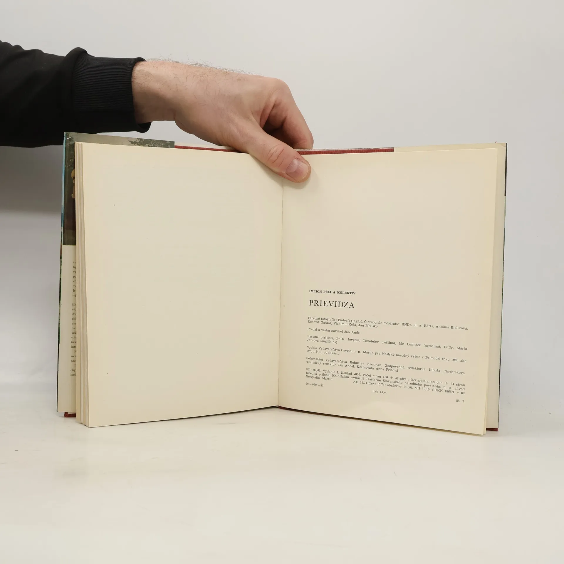 Zemepisná poloha, miestopis, prírodné pomery, história, kultúra, šport a súčasný stav Prievidze (vydané v r. 1983). Obrazová príloha súčasťou publikácie.
